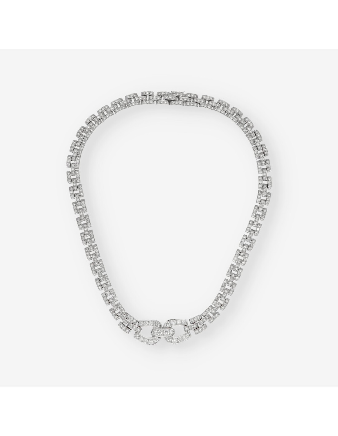 Gargantilla en oro blanco 18kt con brillantes y esmeraldas