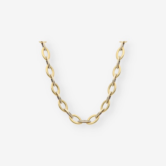 Preciosa gargantilla de segunda mano en oro amarillo de primera ley. Longitud: 46.5cm. Peso: 70.72gr.
