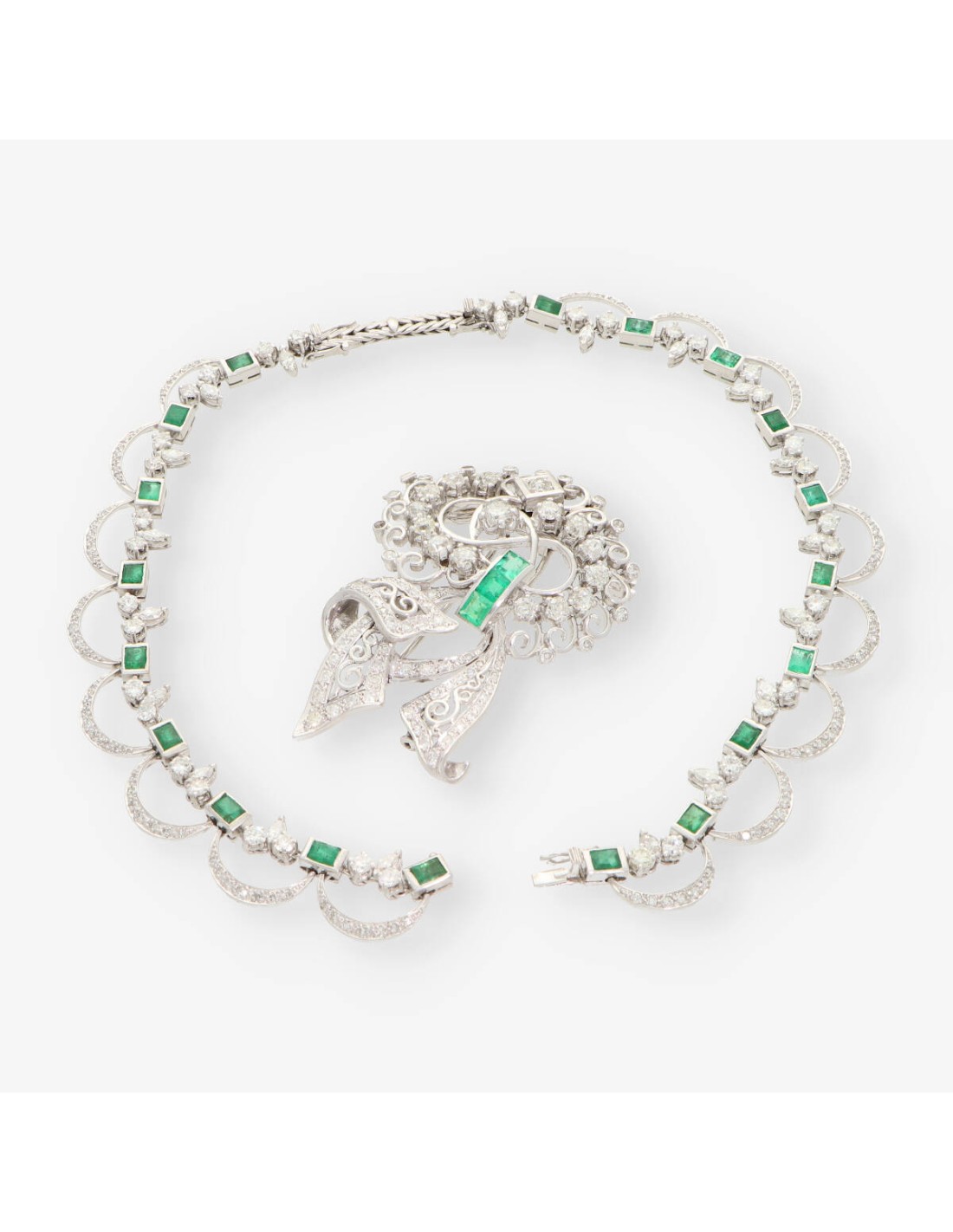 Gargantilla en oro blanco 18kt con brillantes y esmeraldas