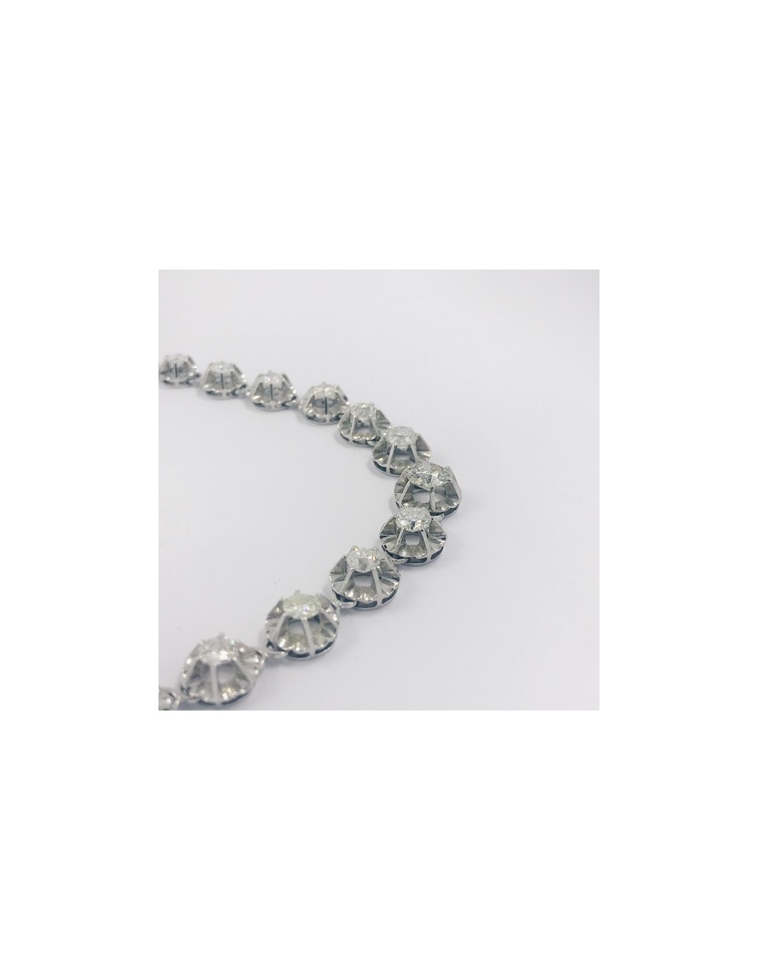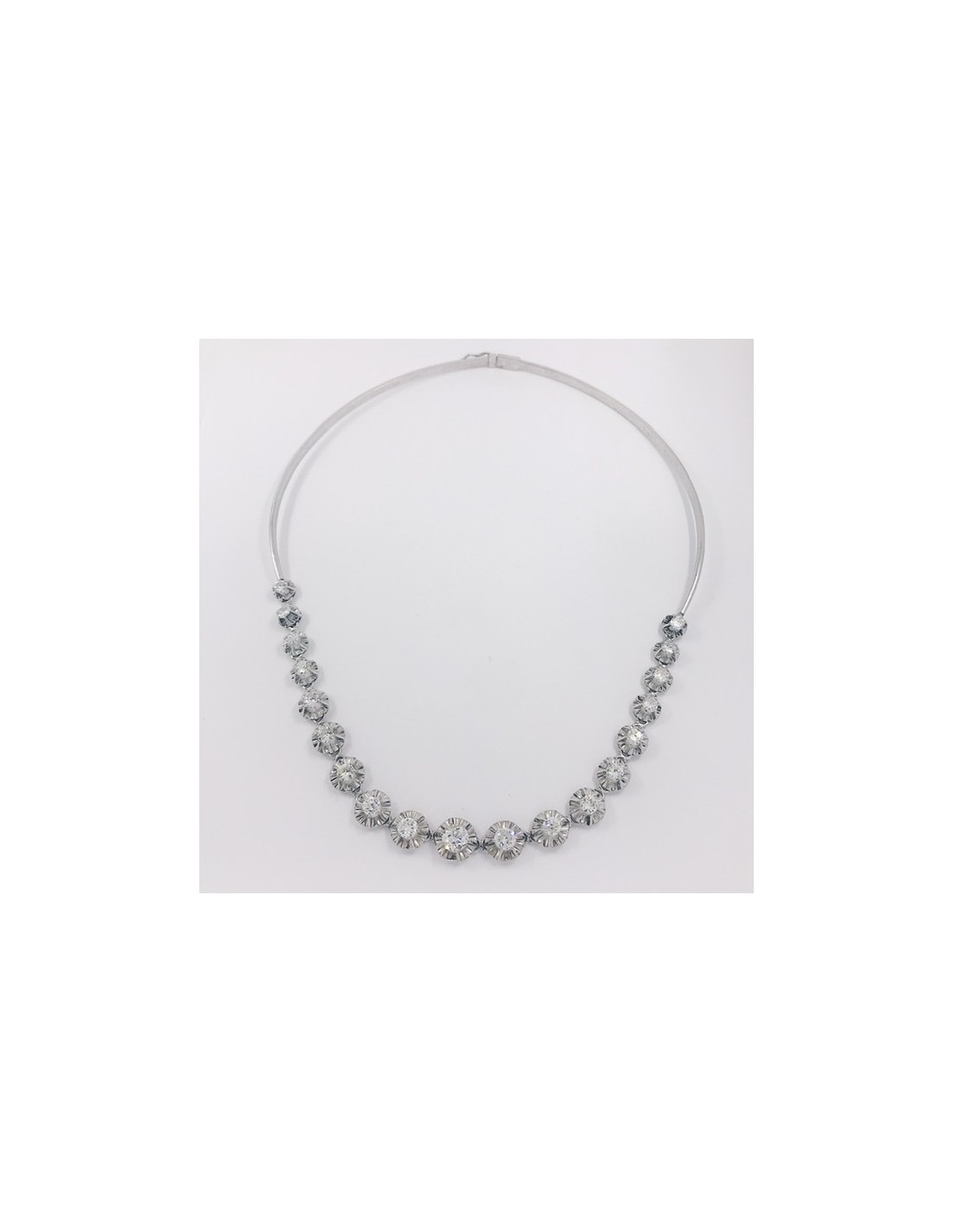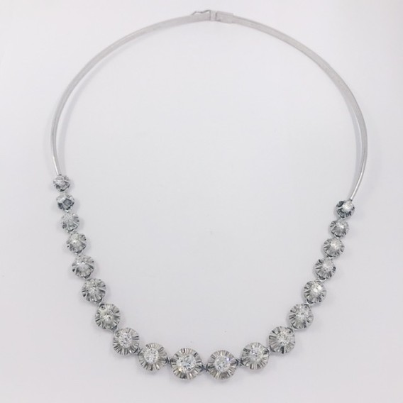 Gargantilla de segunda mano en oro blanco y 19 brillantes de 0,15 qt. a 0,90 qt. cada uno. Peso: 36 gr.