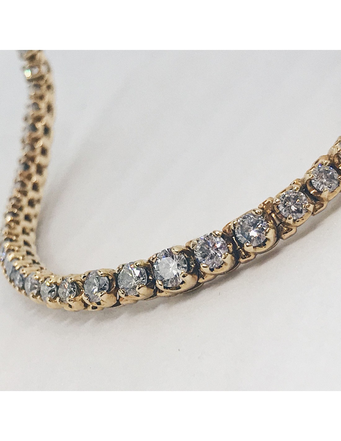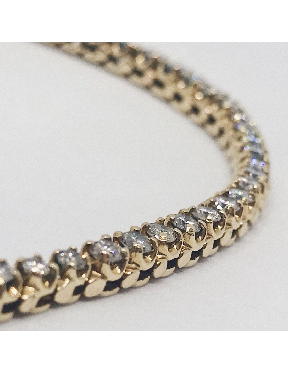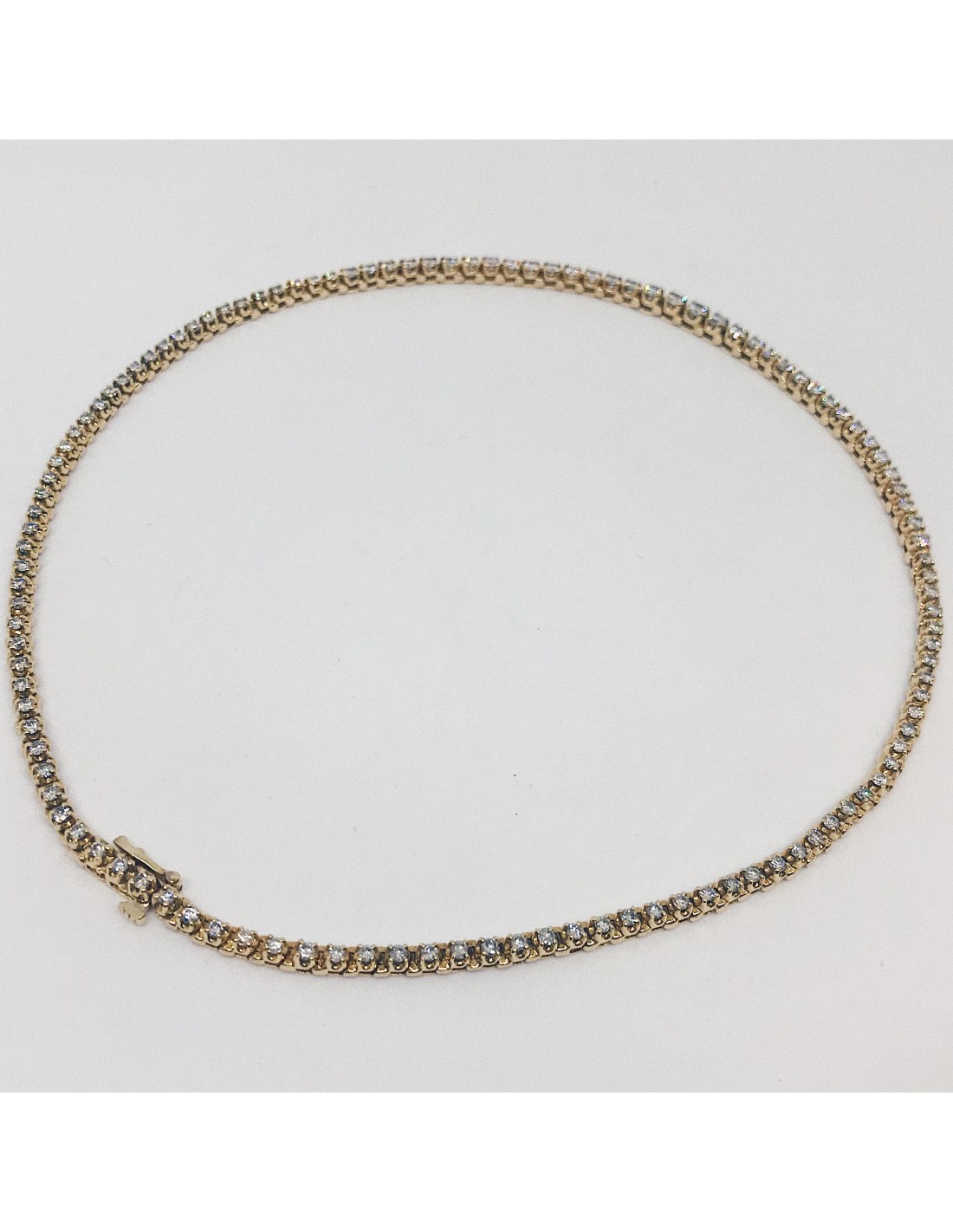 Impresionante gargantilla riviere de segunda mano en oro amarillo de 14kt con brillantes. Una pieza espectacular ideal para celebraciones o galas. Longitud: 40cm. Peso:24,3gr.