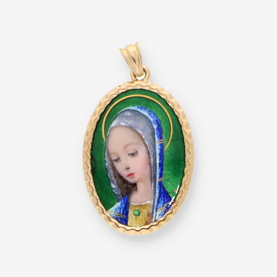 Colgante de oro blanco, brillantes y esmeraldas