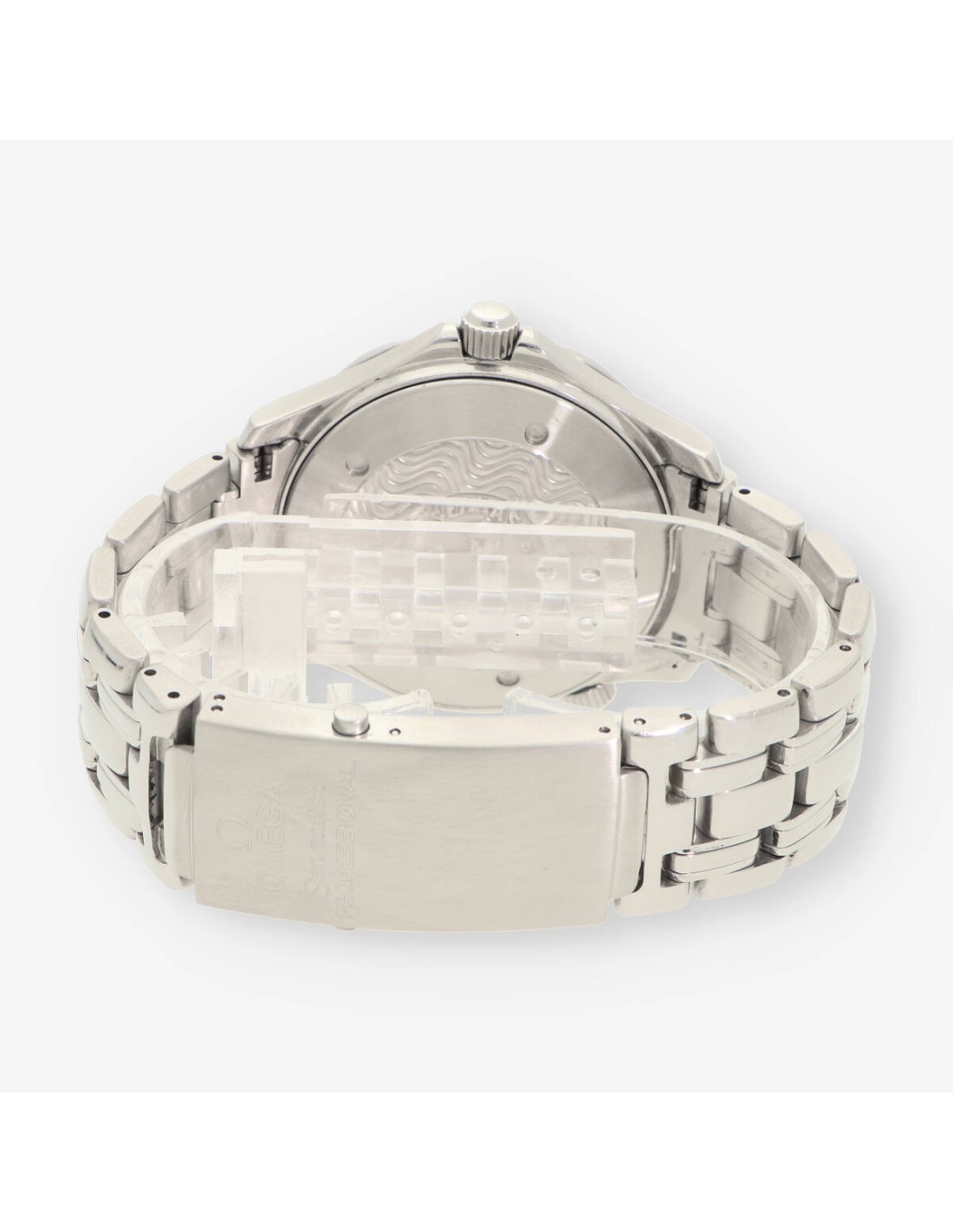 Magnífico reloj Omega Seamaster de segunda mano en perfecto estado de marcha y conservación. movimiento de cuarzo. Caja en acero de 42mm, cristal zafiro fondo azul sin números y resistencia al agua de 30 atmósferas. Correa y cierre en acero.