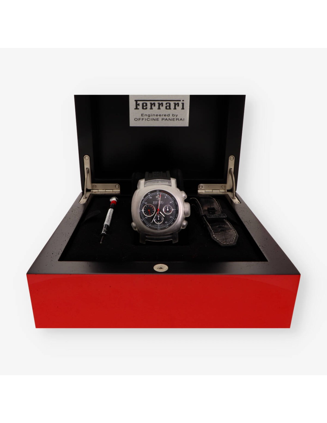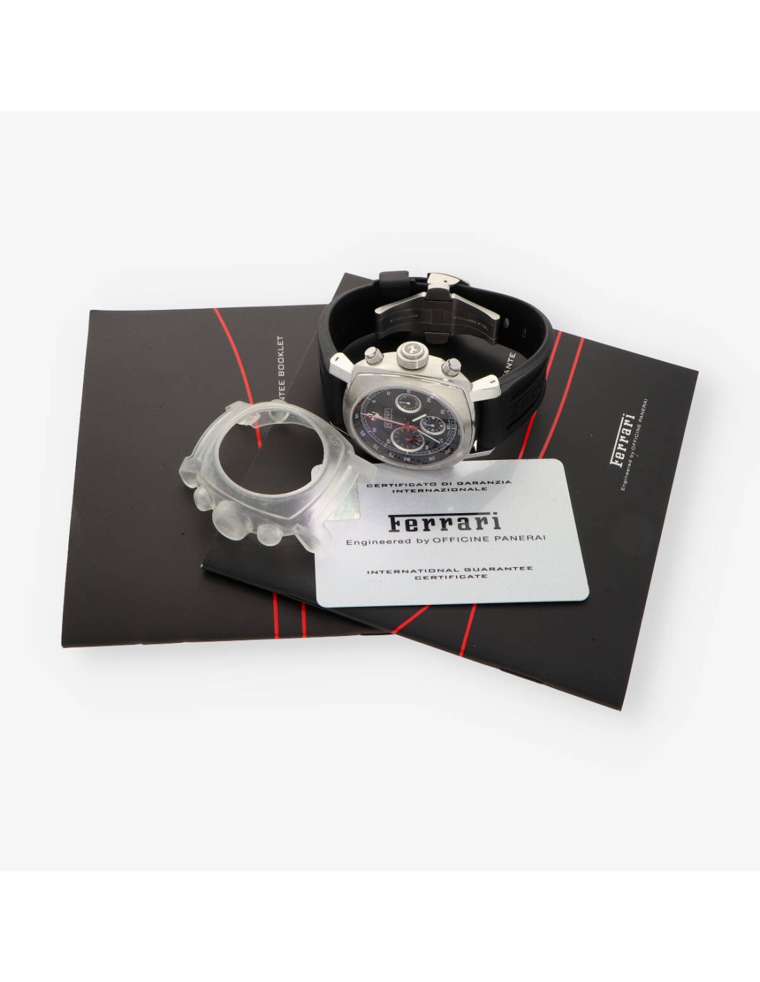 Magnífico Panerai de segunda mano en perfecto estado de marcha y conserbación. Referencia FER00005 con un movimiento automático del calibre OP XVIII con una reservad e marchas de 42h, caja en acero de 45mm, cristal zafiro fondo negro y números arábigos, resistencia al agua de 10 atmósferas. Coreal en piel negro con otra correa de caucho y cierre de broche pegable en acero. Año 2007