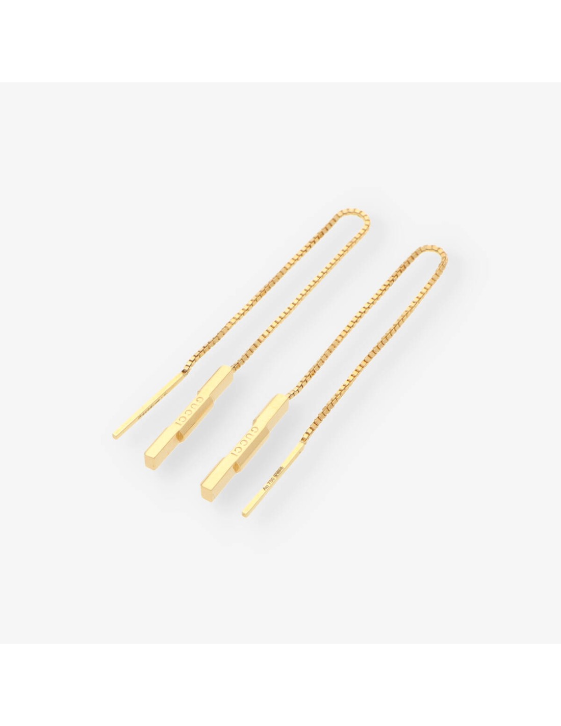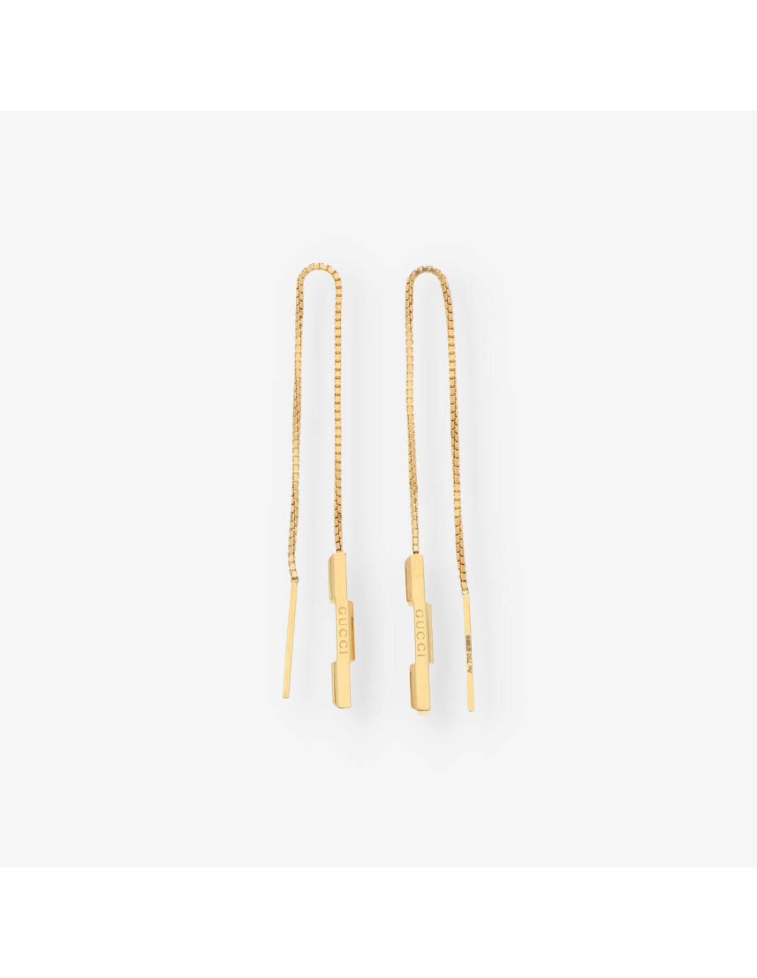 Preciosos pendientes GUCCI de segunda mano en oro amarillo de primera ley. Largo total: 12cm. Ancho: 0.2cm. Peso: 5.1gr.
