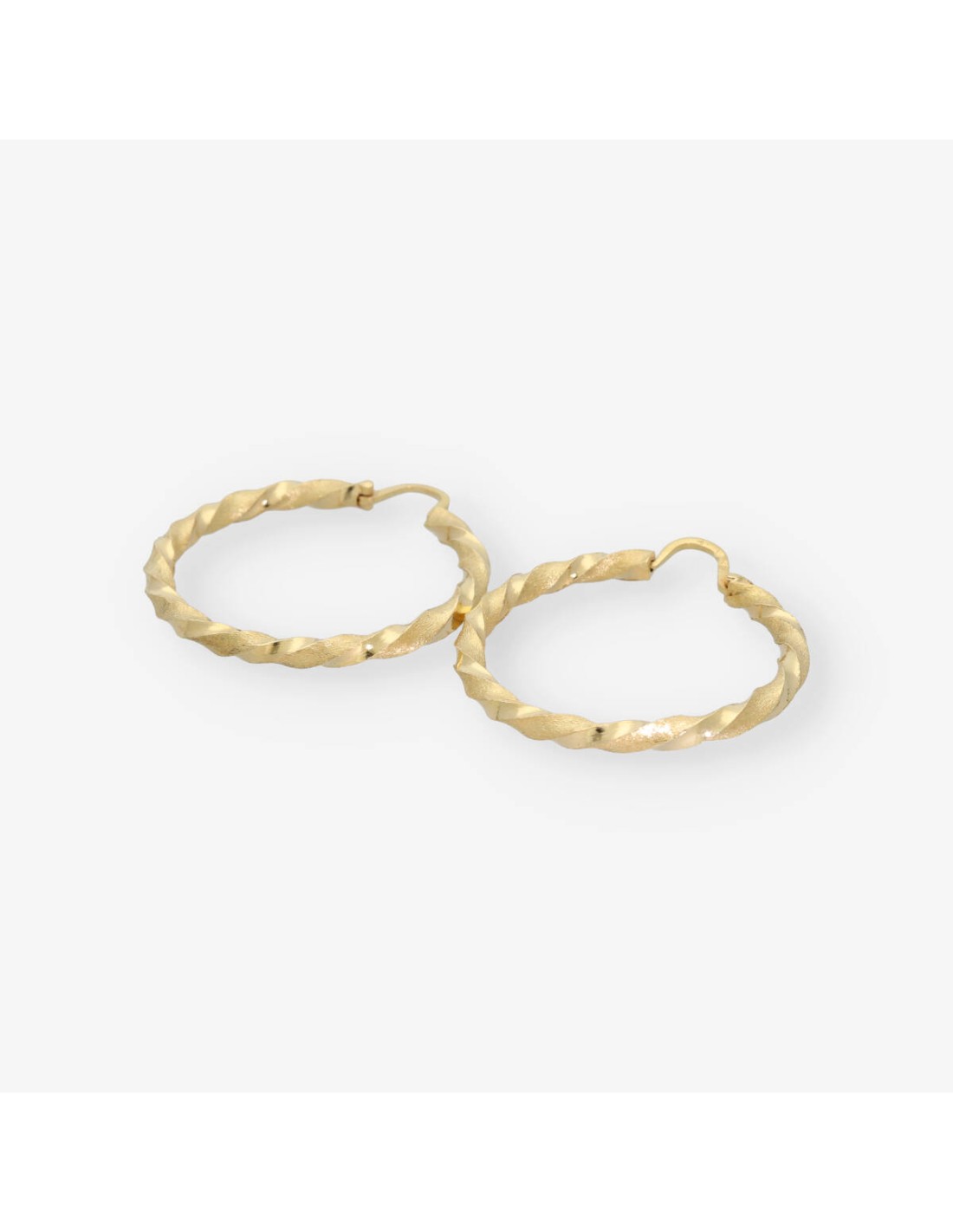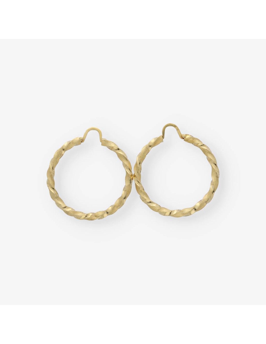 Preciosos pendientes de segunda mano en oro amarillo de primera ley en forma de aro con un magnífico acabado. Ideal para cualquier momento. Diámetro: 3.5cm. Grosor: 0.25cm. Peso: 7.7gr.