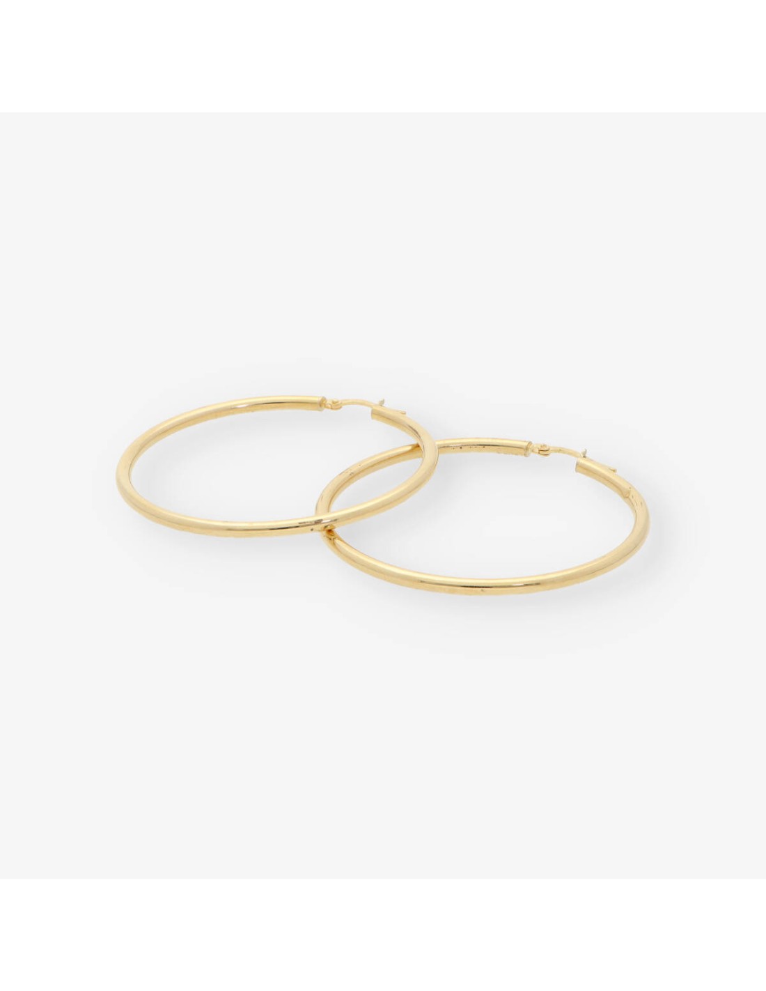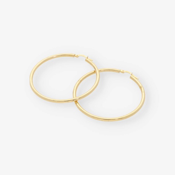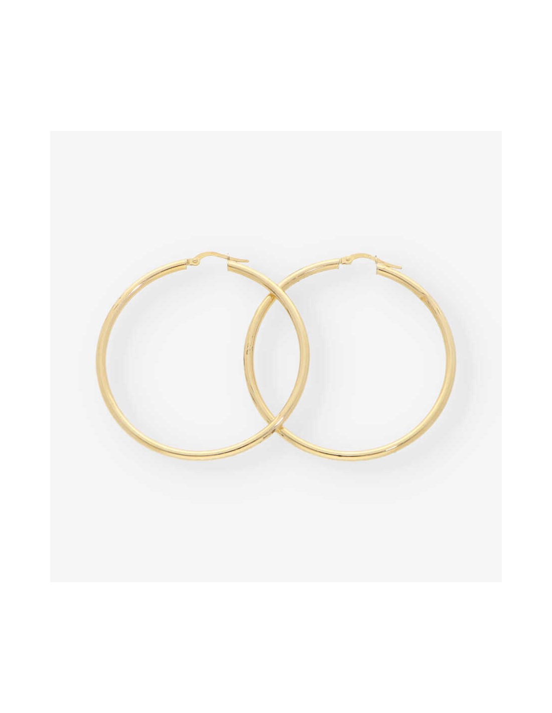Preciosos pendientes de segunda mano en oro amarillo de primera ley en forma de aro. Ideal para cualquier momento. Diámetro: 4.9cm. Grosor: 0.2cm.. Peso: 3.25gr.
