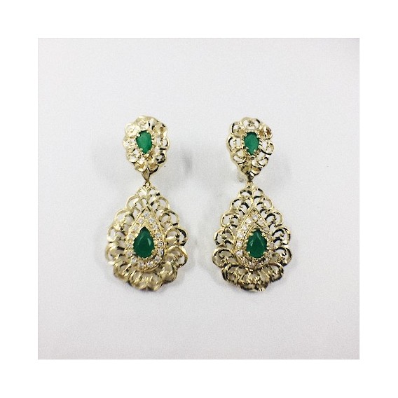 Pendientes largos con diamantes y zafiros
