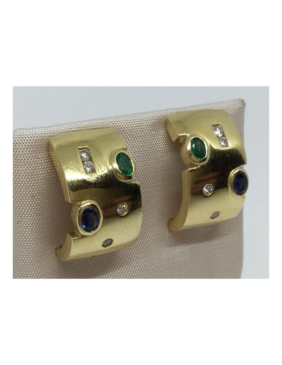 Pendientes de oro con brillantes, esmeralda y zafiro