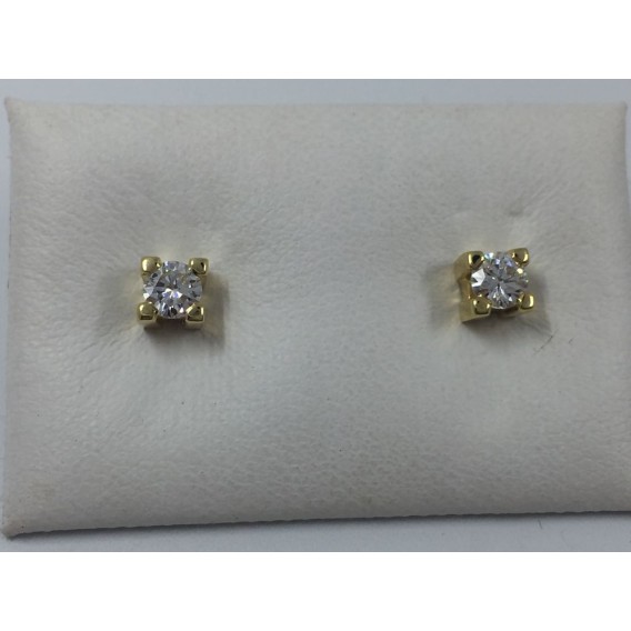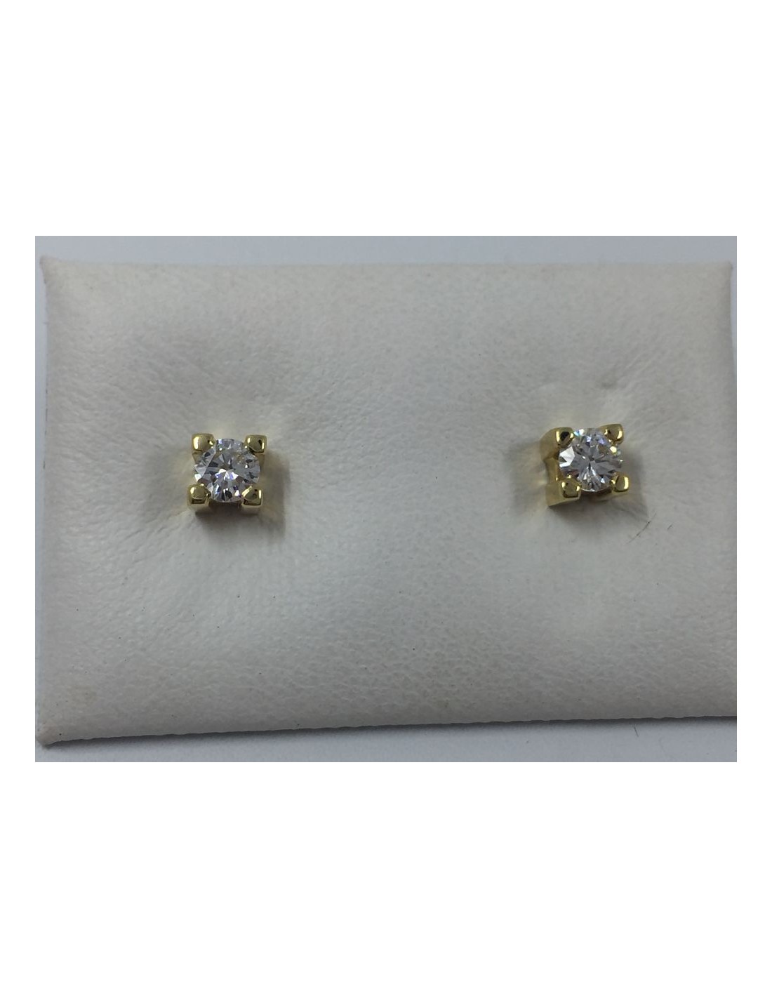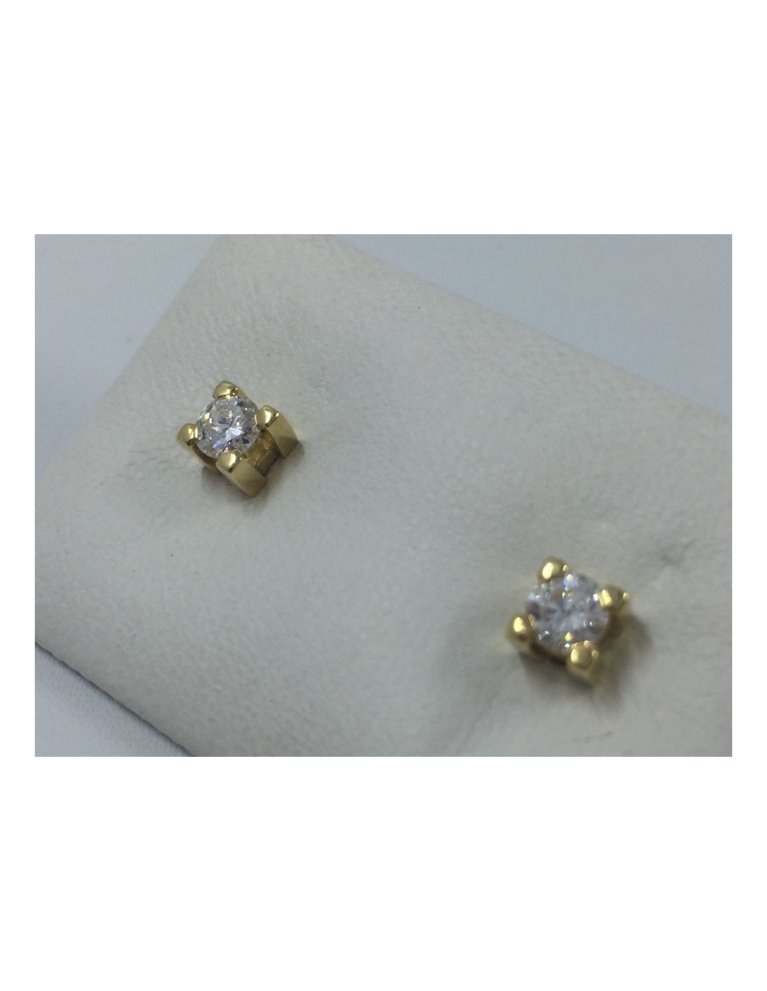 Pendientes dormilonas de segunda mano en oro amarillo de 18 kt. y brillantes engastados en grapas. Peso total brillantes: 0,50 qt. aprox. Peso: 2,6 gr.