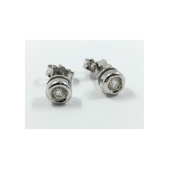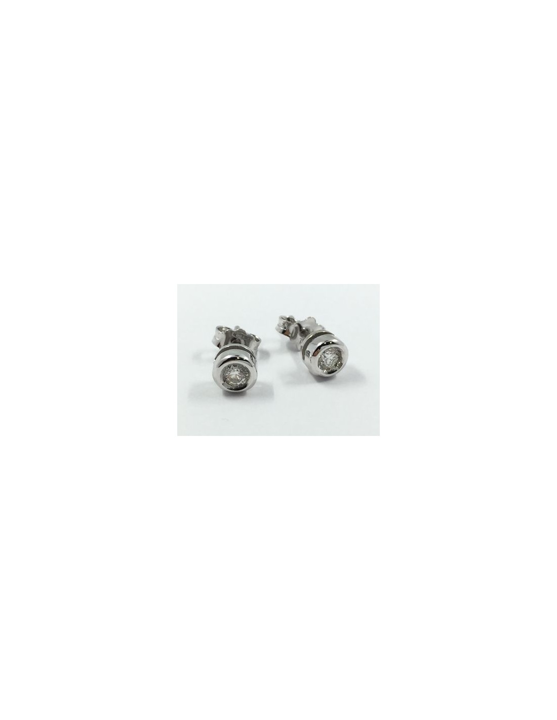 Pendientes dormilonas de segunda mano en oro blanco de 18 kt. y brillantes engastados en chatón. Peso: 1,8 gr. Peso brillantes: 0,40 qt. aprox.