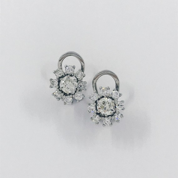 Pendientes en oro blanco 18kt con brillantes y esmeraldas