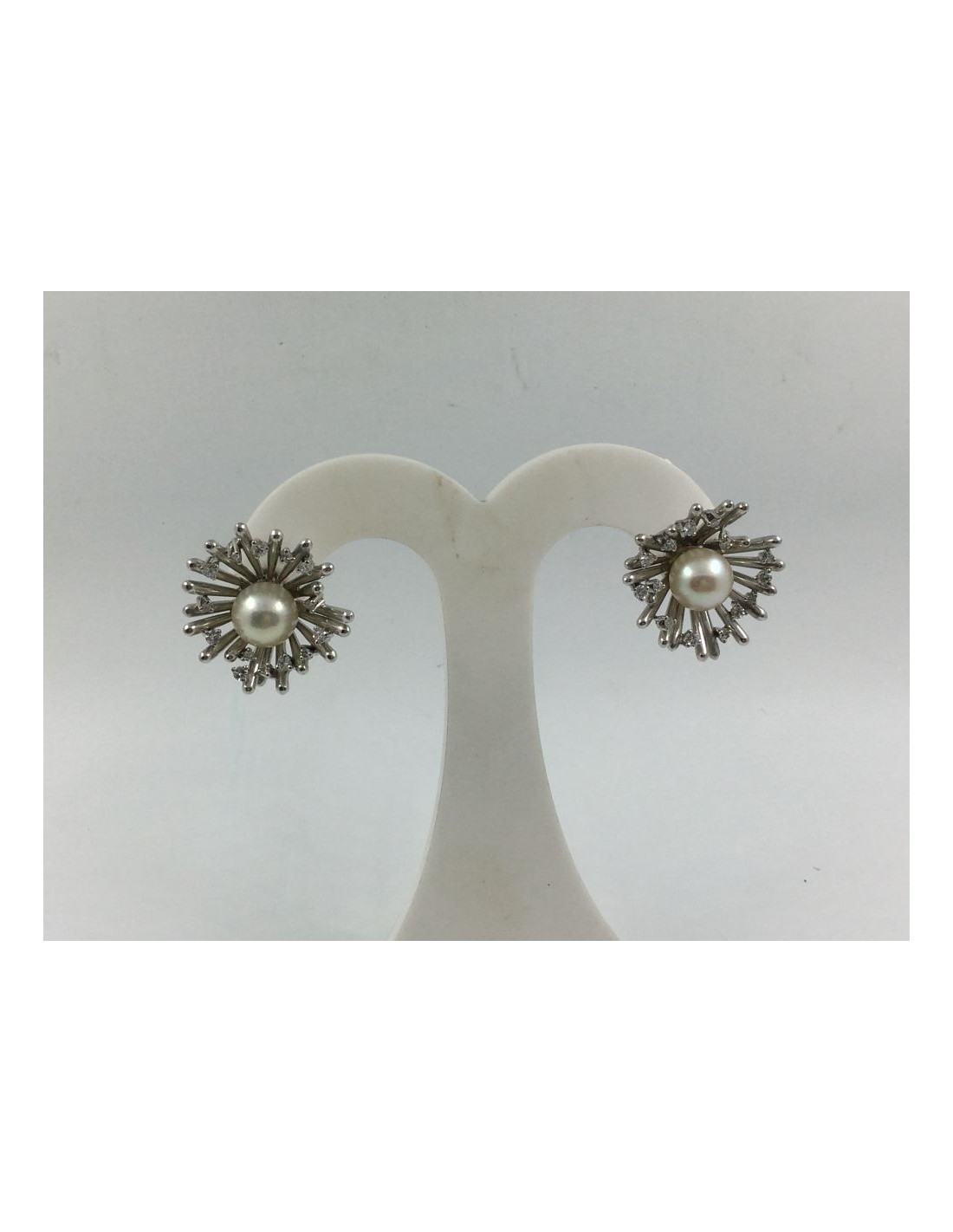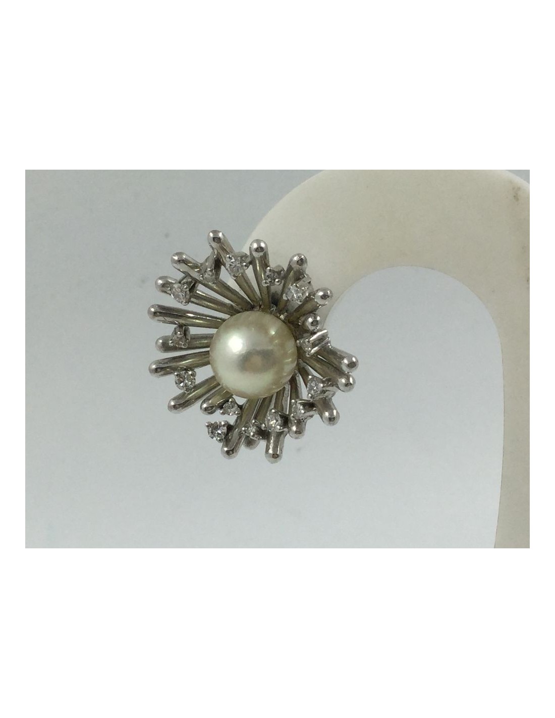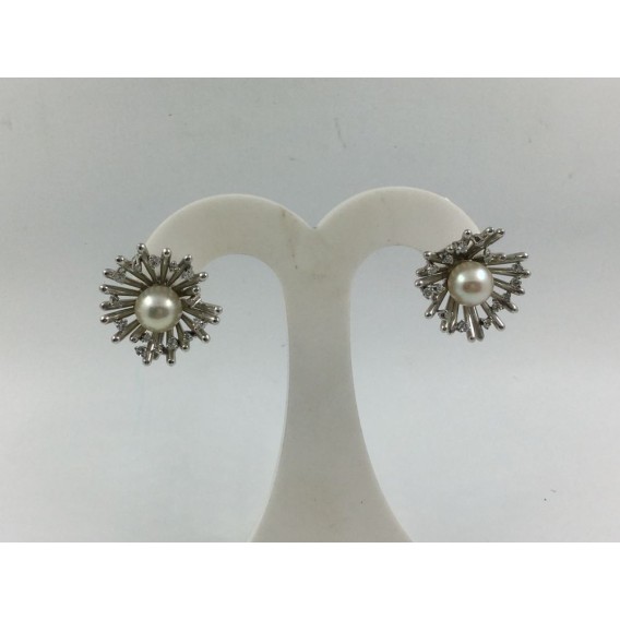 Pendientes en oro blanco con brillantes y perla cultivada