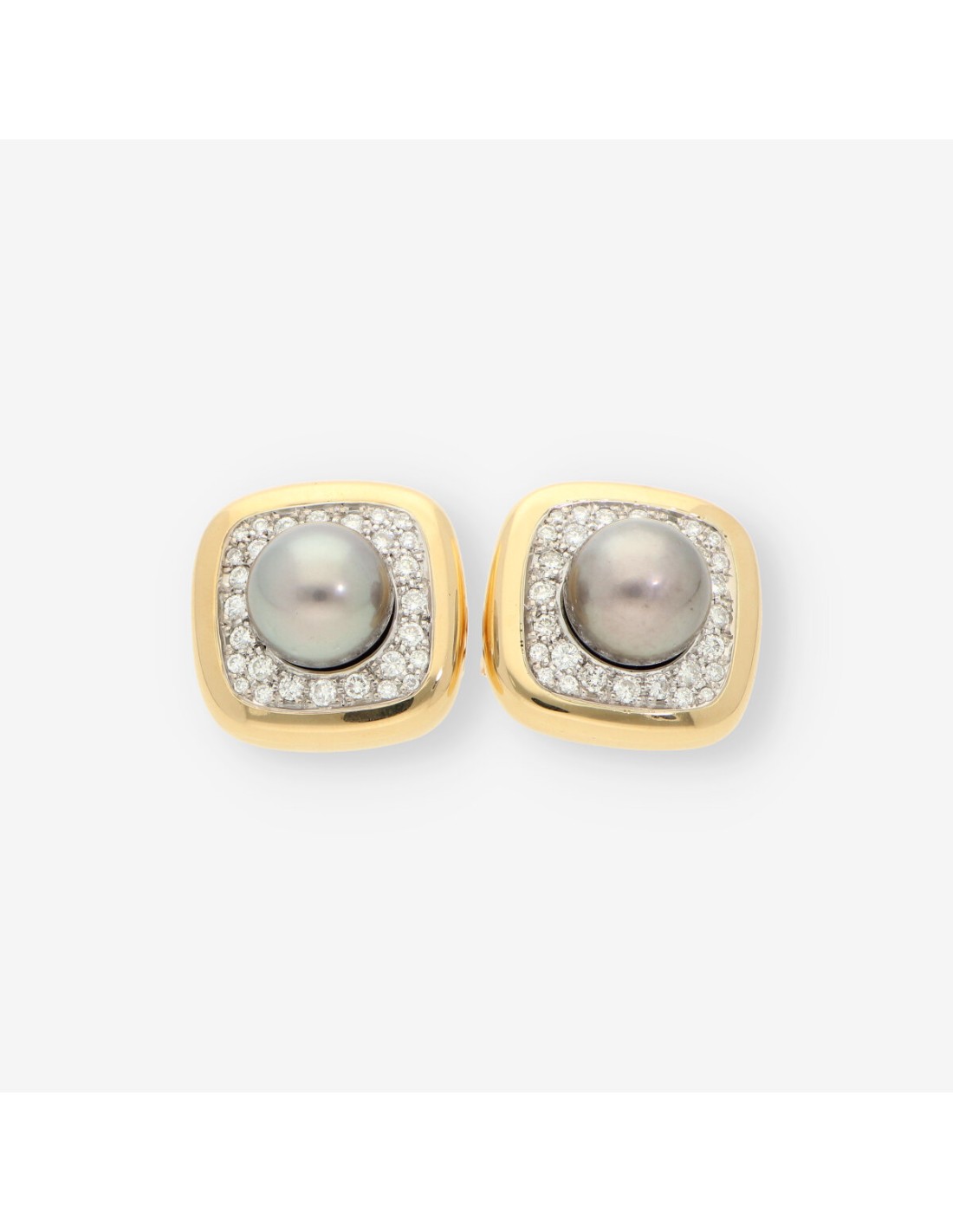 Estos elegantes pendientes de segunda mano en oro de primera ley son una joya impresionante que destaca por su diseño y brillantez. Cada pendiente presenta un conjunto de diamantes brillantes que rodean una exquisita perla oscura en el centro, añadiendo un toque de sofisticación y lujo. Con unas dimensiones de 2 cm de alto y 2 cm de ancho, estos pendientes tienen un peso total de 12.2 gramos, lo que los hace perfectos para ocasiones especiales. Su diseño cuadrado y elegante, en combinación con la calidad de los materiales, convierte a estos pendientes en una pieza única y atemporal que resalta la belleza y estilo de quien los lleve. Perfectos para realzar cualquier atuendo, estos pendientes son una adición valiosa a cualquier colección de joyería fina.
