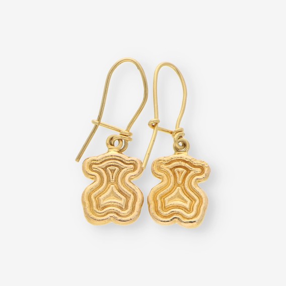 Pendientes TOUS en oro amarillo de 18 quilates, de segunda mano. Con un diseño icónico en forma de oso, estos pendientes miden 1.5 cm de alto por 1 cm de ancho y tienen un peso de 2.8 gramos. Un accesorio elegante y atemporal, perfecto para añadir un toque de sofisticación a cualquier estilo.