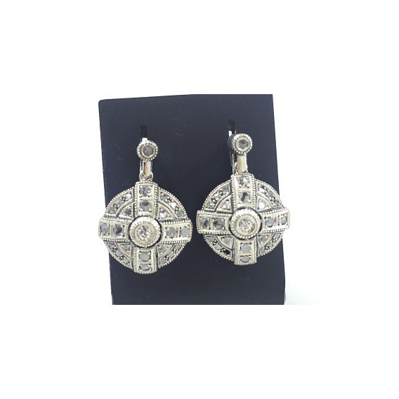 Pendientes rosetón de segunda mano en oro blanco de 18 kt. y brillantes. Peso: 7,8 g. Diseño clásico de los años 30 del siglo XX.