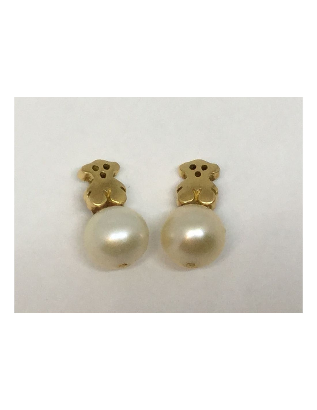 Pendientes Tous de ocasión en oro de 18 kt. y perla cultivada. Altura: 1,2 cm. Peso: 2,5 gr.