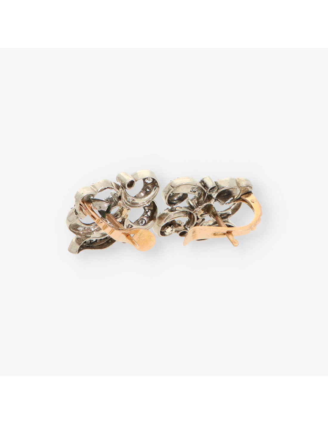Preciosos pendientes vintage de segunda mano en oro blanco de primera ley con diamantes. Una magnifica pieza antigua perfectamente conservado. Cierre catalán. Alto: 2.1cm. Ancho: 1.6cm. Peso: 8.1gr.