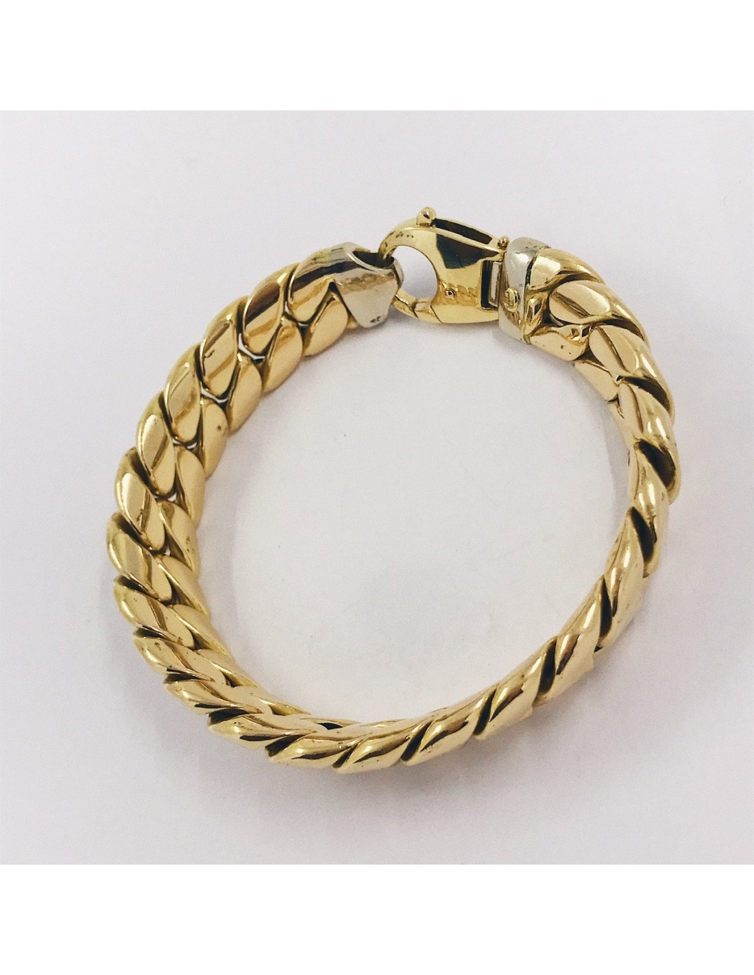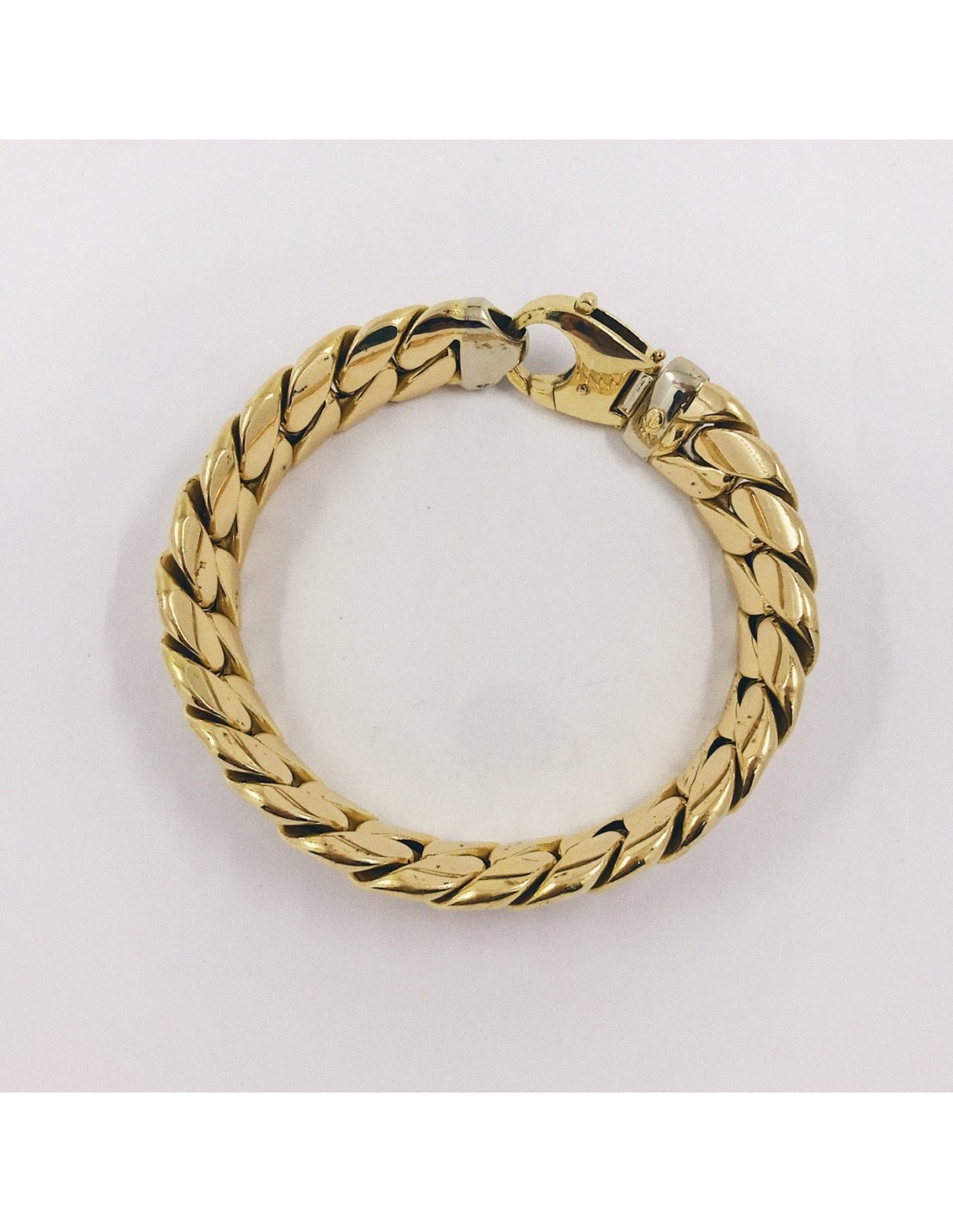 Magnifica pulsera barbada de segunda mano en oro amarillo de primera ley. Un diseño clásico con el que siempre estarás a la moda. 19,5cm. Peso: 32,2gr.