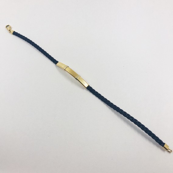 Pulsera con placa de oro y cuero trenzado. Peso: 2,45gr. Diametro: 6cm.