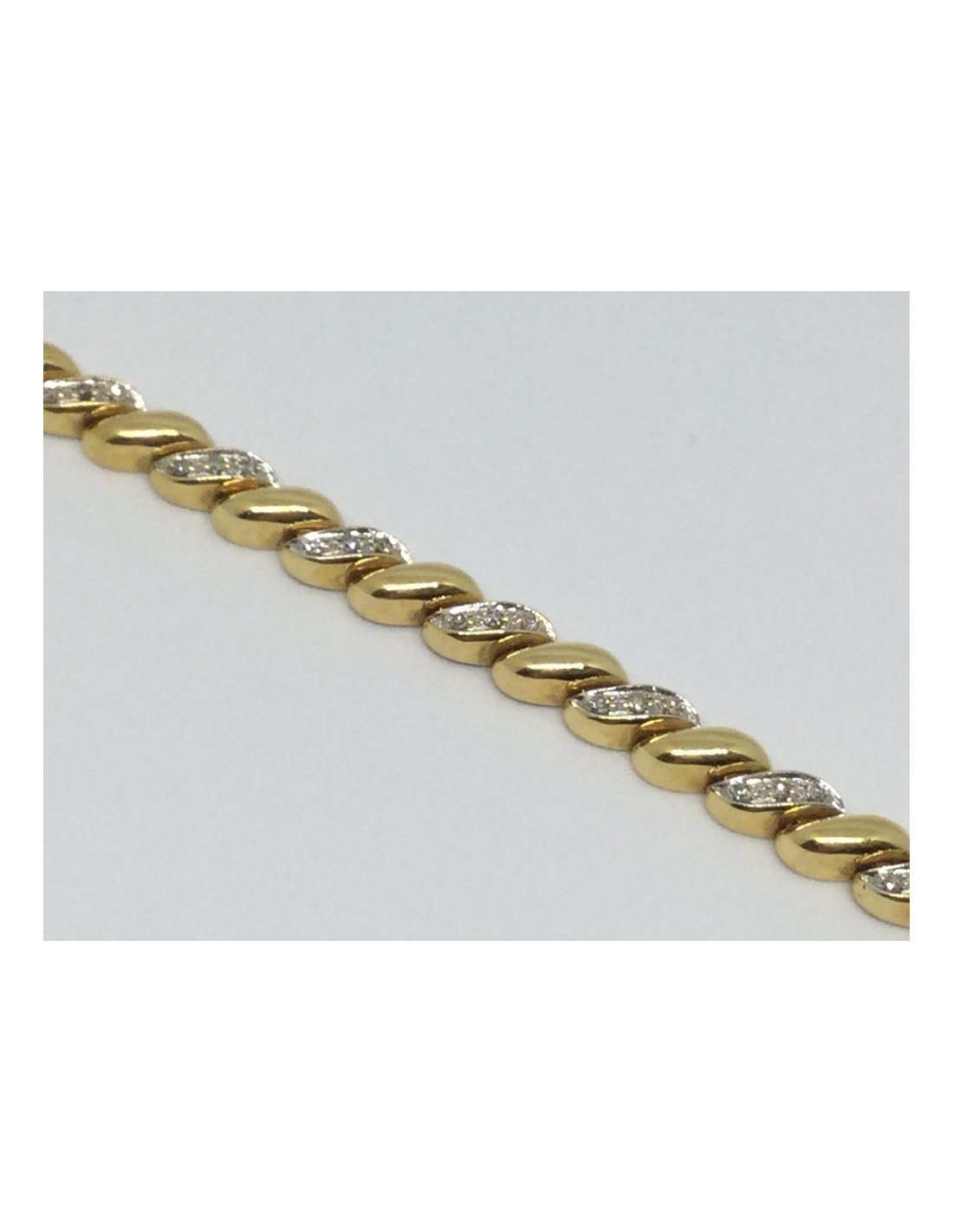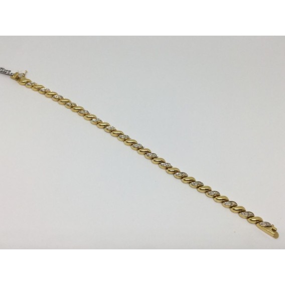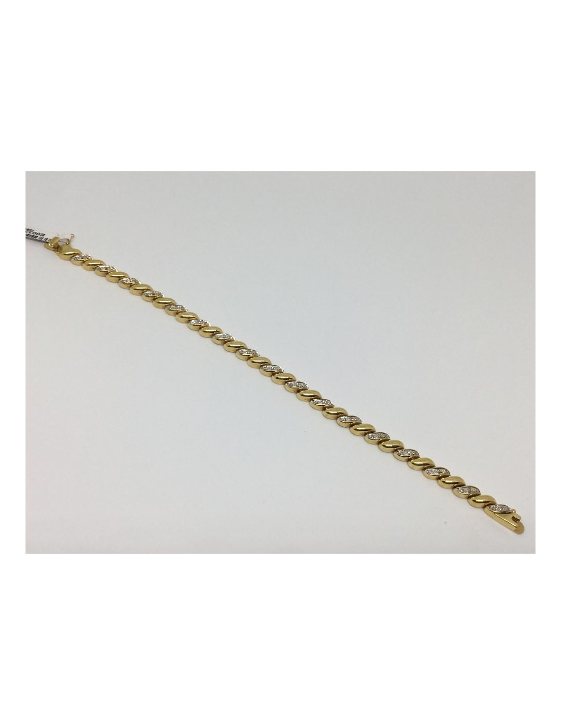 Pulsera de ocasión de oro amarillo de 18 kt. y centros de brillantes. Longitud: 18,8 cm. Peso: 21,2 gr.