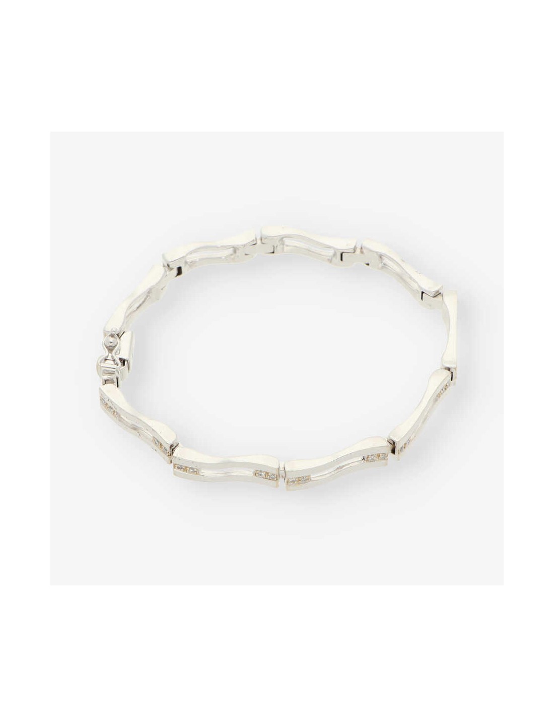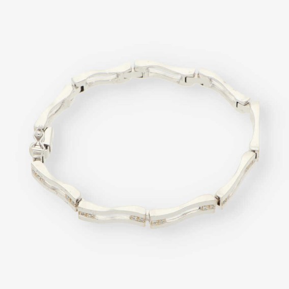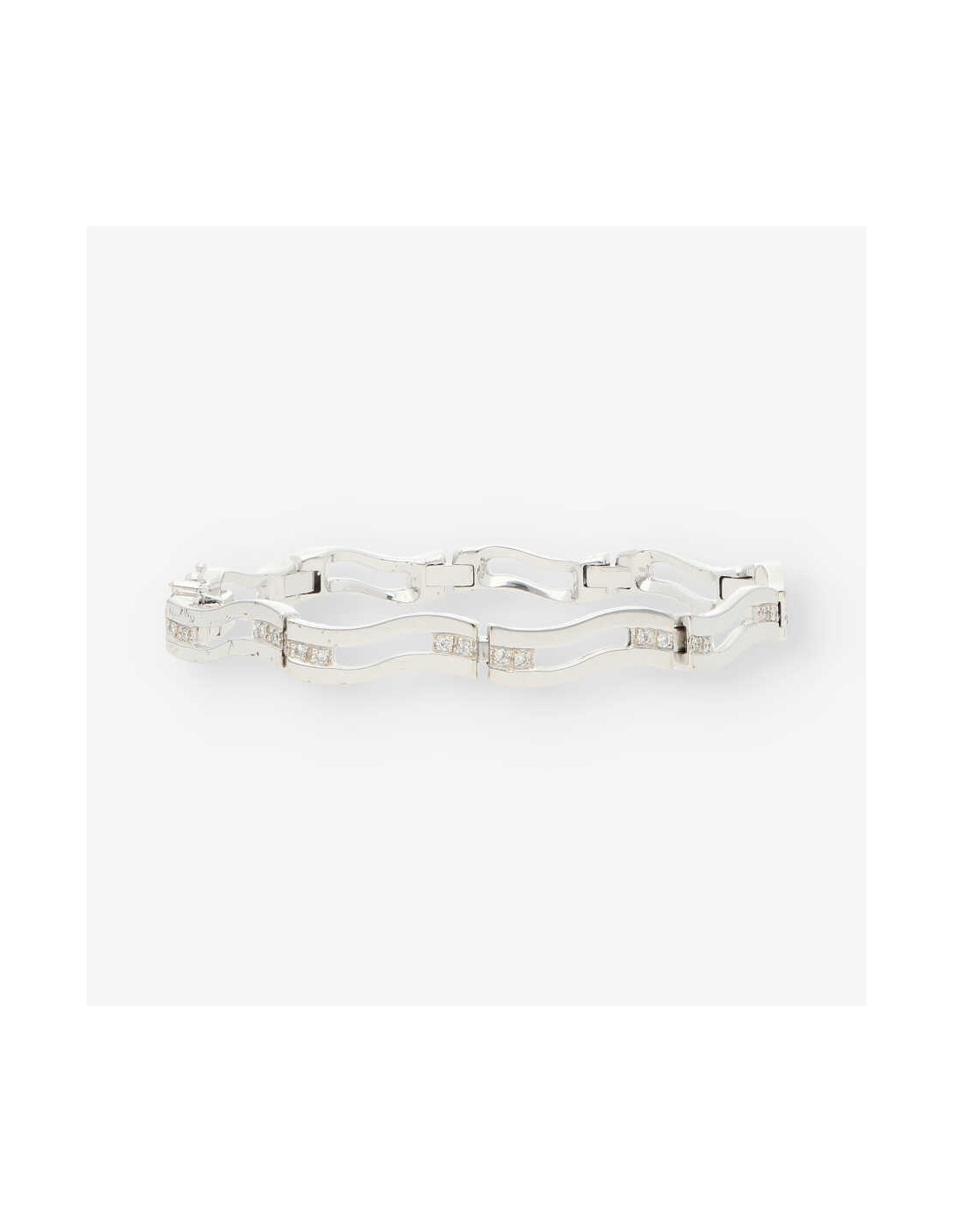Preciosa pulsera de segunda mano en oro blanco de primera ley con brillante, un magnifico diseño ideal para  culaquier momentos. Largo: 19.5cm. Ancho: 0.5cm. Peso: 20gr.