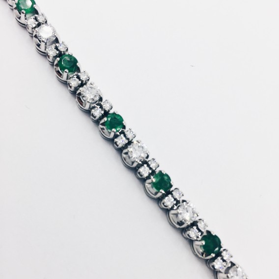 Pulsera de oro blanco con esmeraldas y brillantes