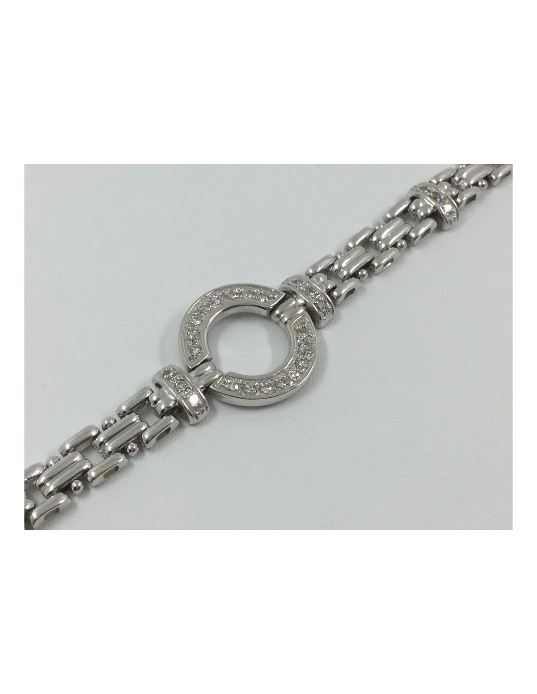 Pulsera de ocasión en oro blanco y brillantes. Longitud: 19 cm. Peso: 20 gr.