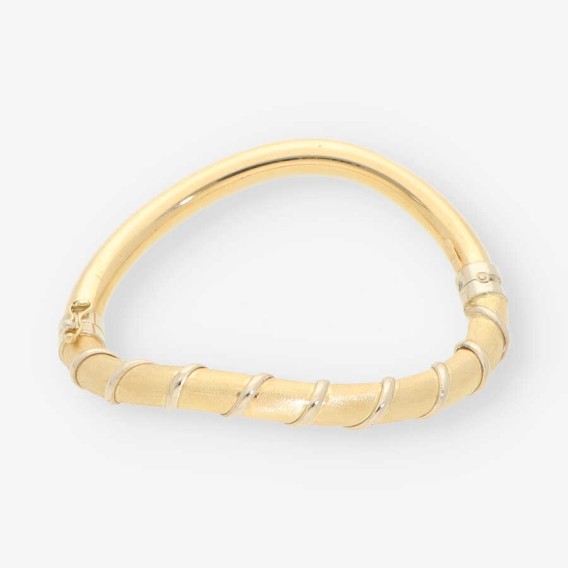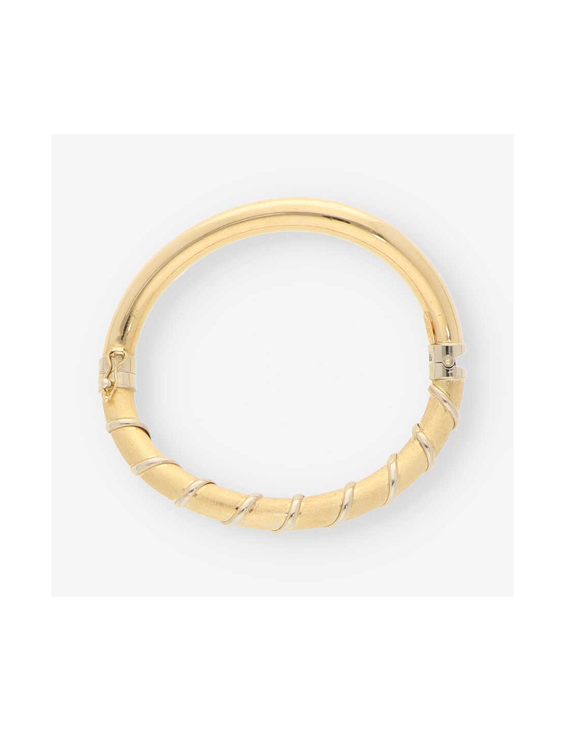 Preciosa pulsera de segunda mano en oro de primera ley. Una pieza clásica y elegante, ideal para los amantes de pulseras. Diámetro: 6cm. Grosor: 0.5cm. Peso: 12.72gr.