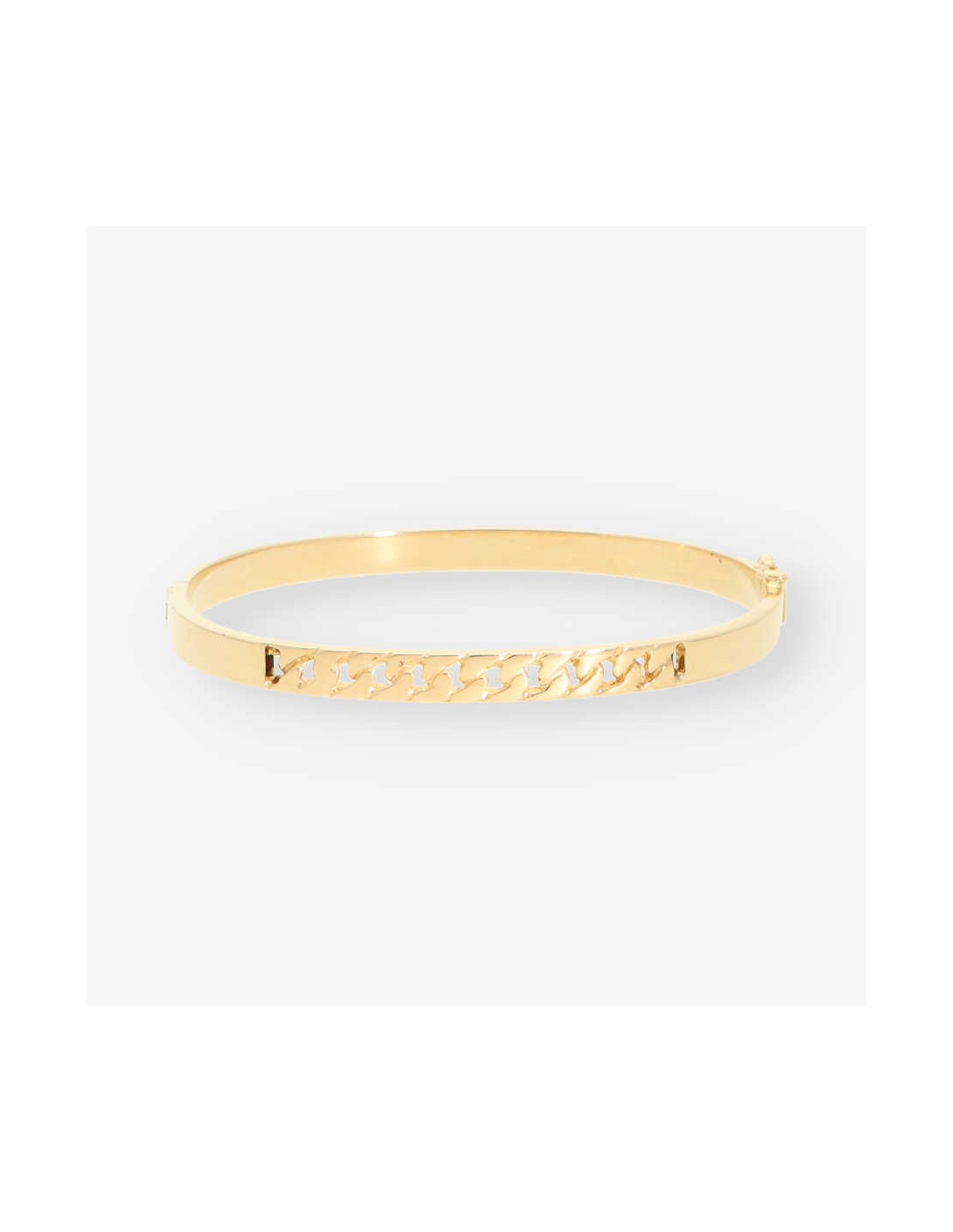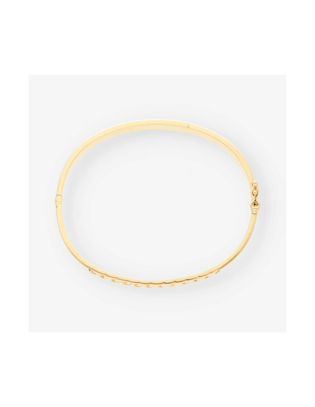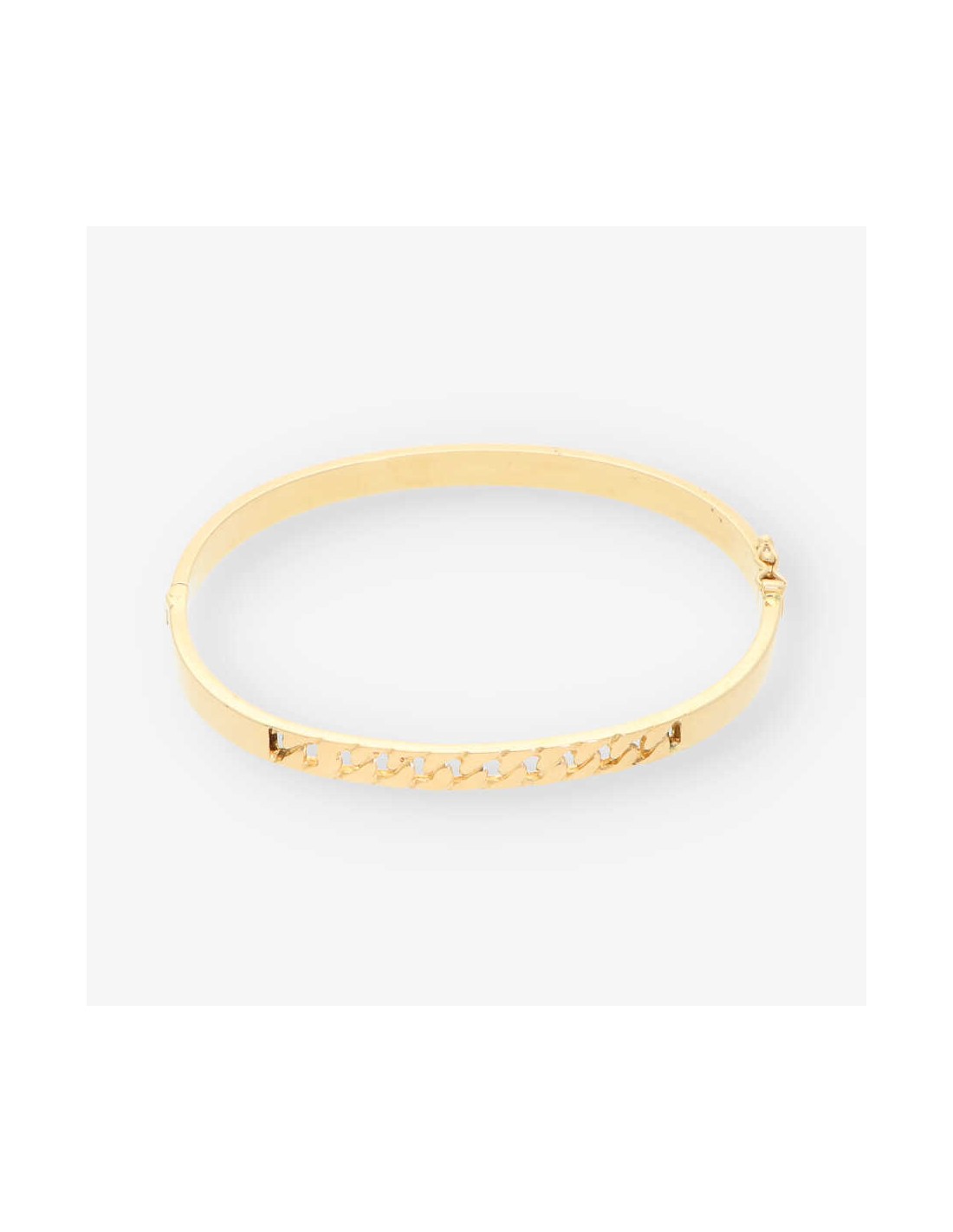 Preciosa pulsera de segunda mano en oro de primera ley. Una pieza clásica y elegante, ideal para los amantes de pulseras. Diámetro: 6cm. Grosor: 0.4cm. Peso: 11.92gr.