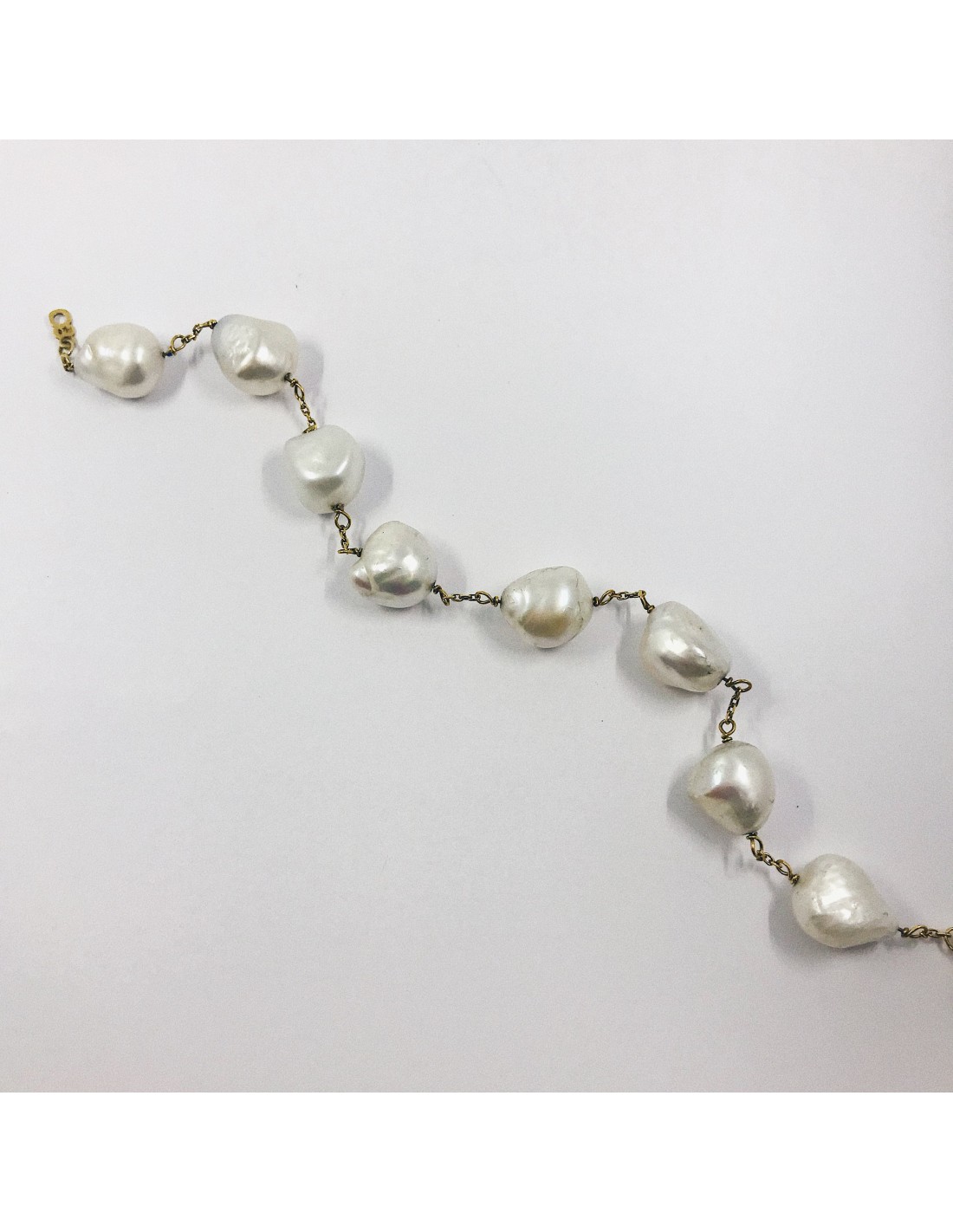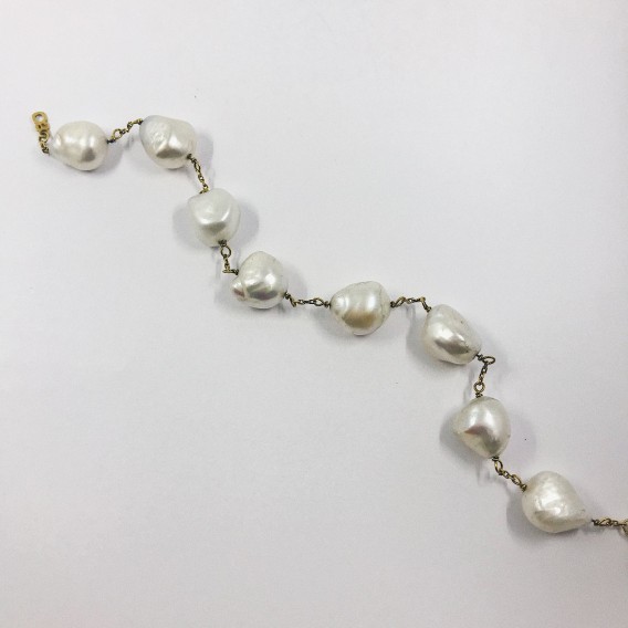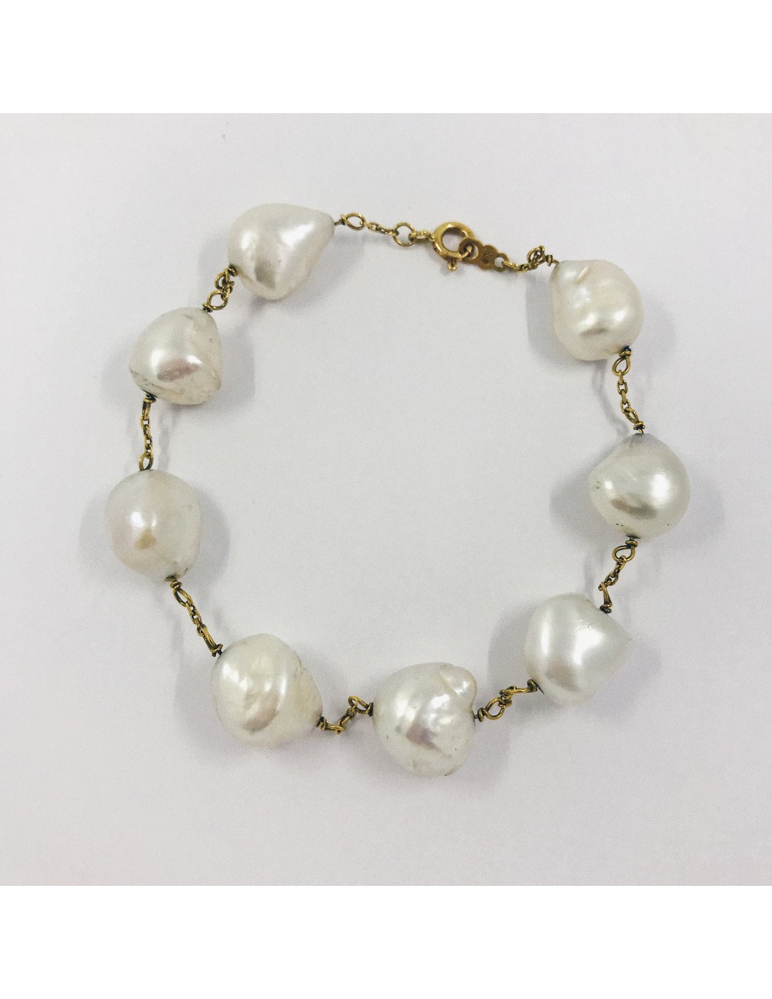 Preciosa pulsera de segunda mano en oro de 18kt con perlas blancas. Con un magnifico diseño se vuelve en un perfecto complemento para las cuatro estaciones del año. Longitud: 21,5cm. Peso: 18,5gr.