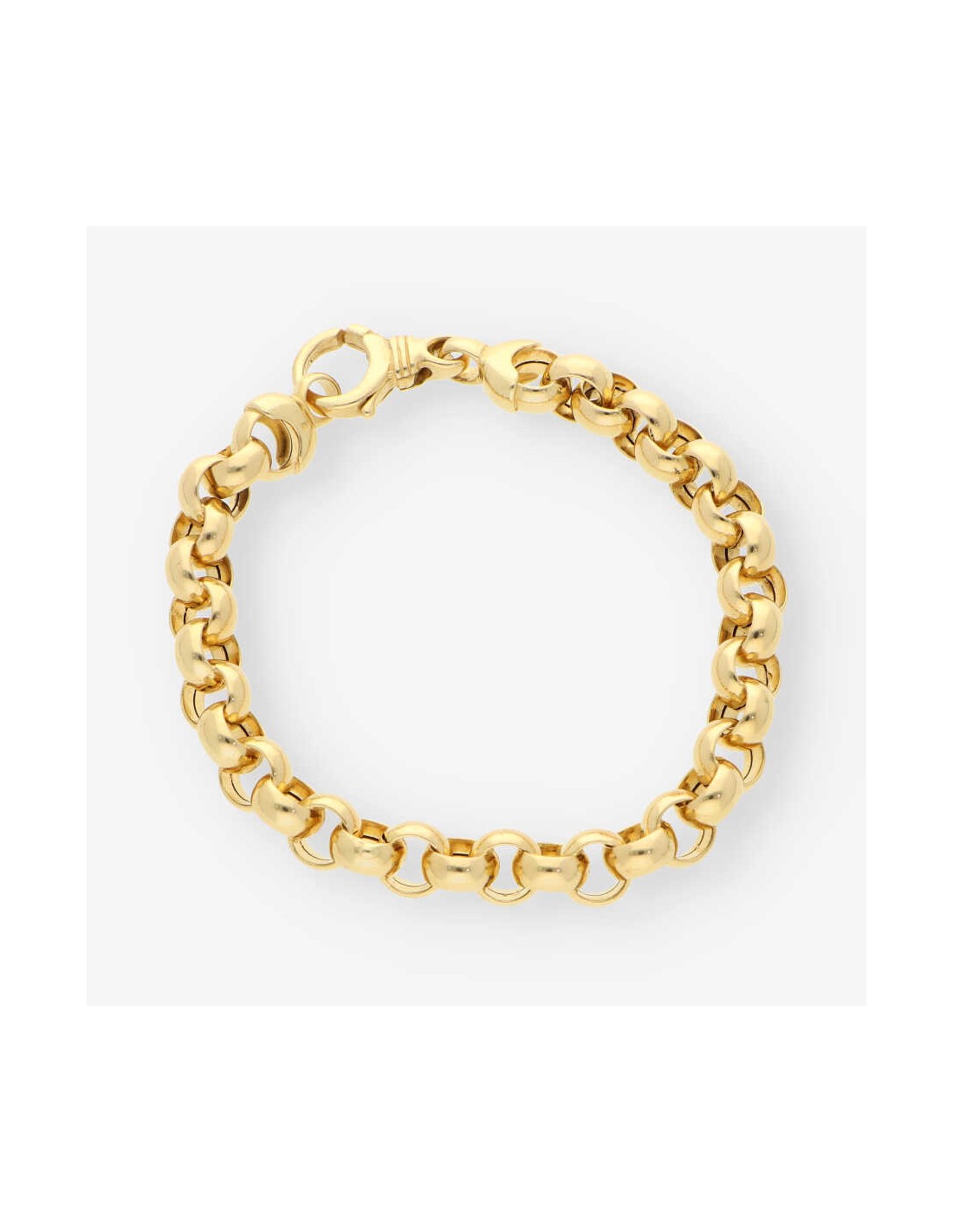 Preciosa pulsera de segunda mano en oro de primera ley. Una pieza clásica y elegante, ideal para los amantes de pulseras. Largo: 18.5cm. Ancho: 0.5cm. Peso: 17.6gr.