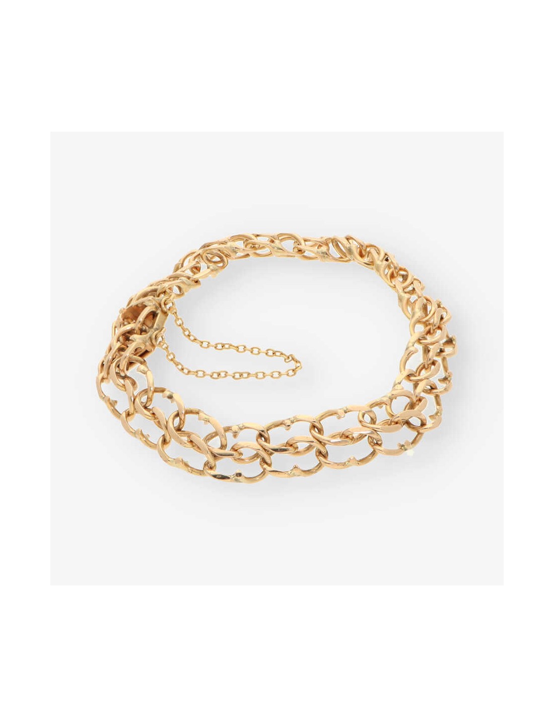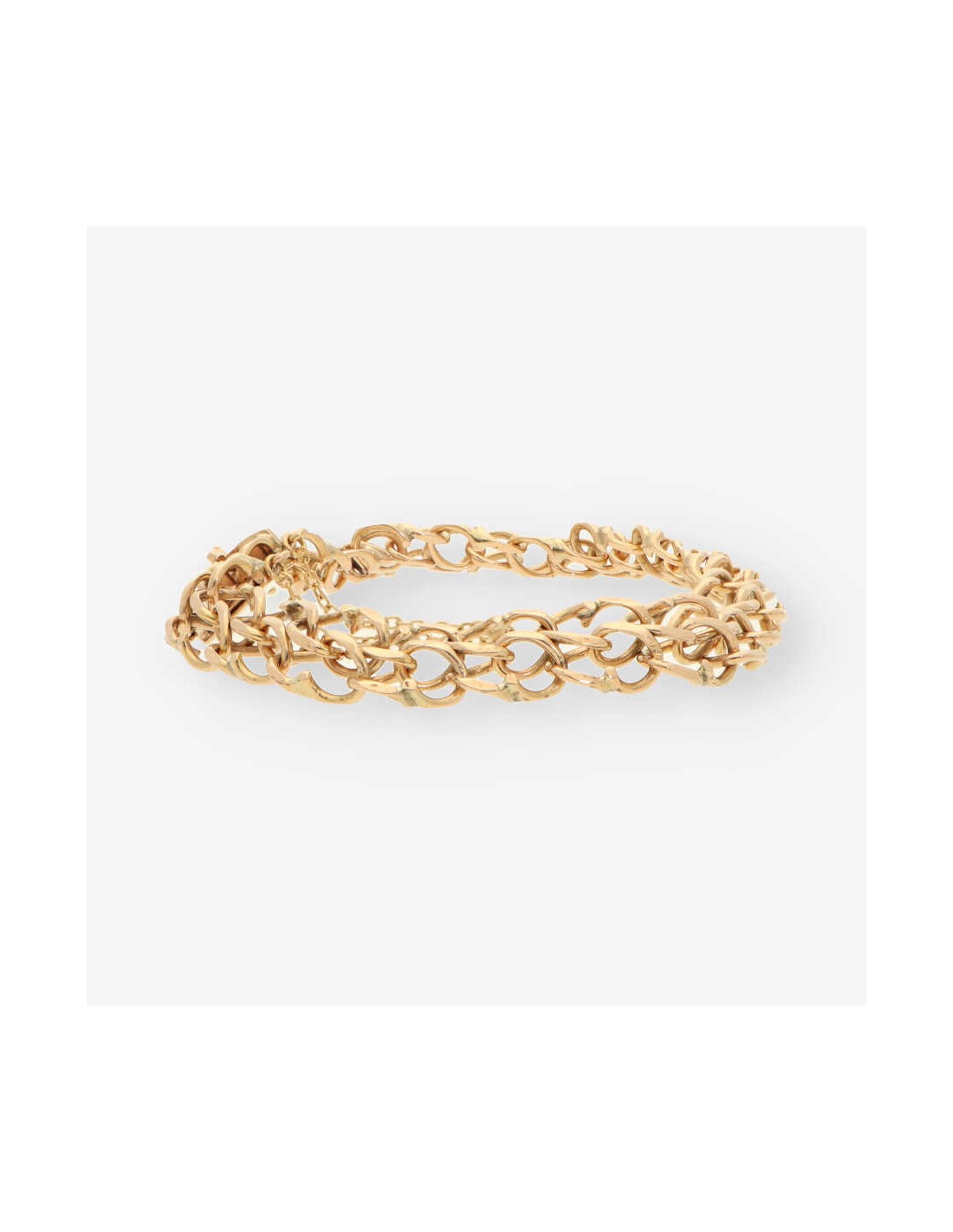 Preciosa pulsera de segunda mano en oro amarillo de primera ley. Una pieza clásica y elegante, ideal para los amantes de pulseras. Diámetro: 6cm. Grosor: 1cm. Peso: 28.2gr.