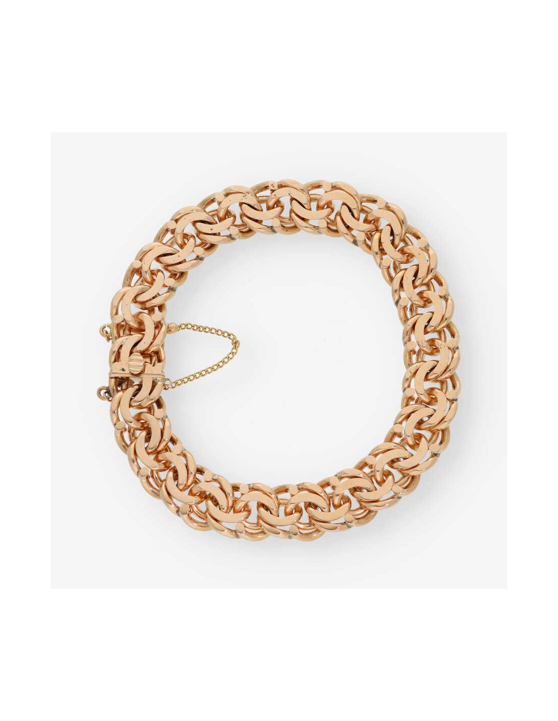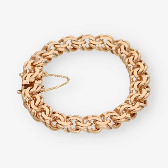Preciosa pulsera de segunda mano en oro rosa de primera ley. Una pieza clásica y elegante, ideal para los amantes de pulseras. Diametro: 6cm. Grosor: 1.1cm. Peso: 60.5gr.