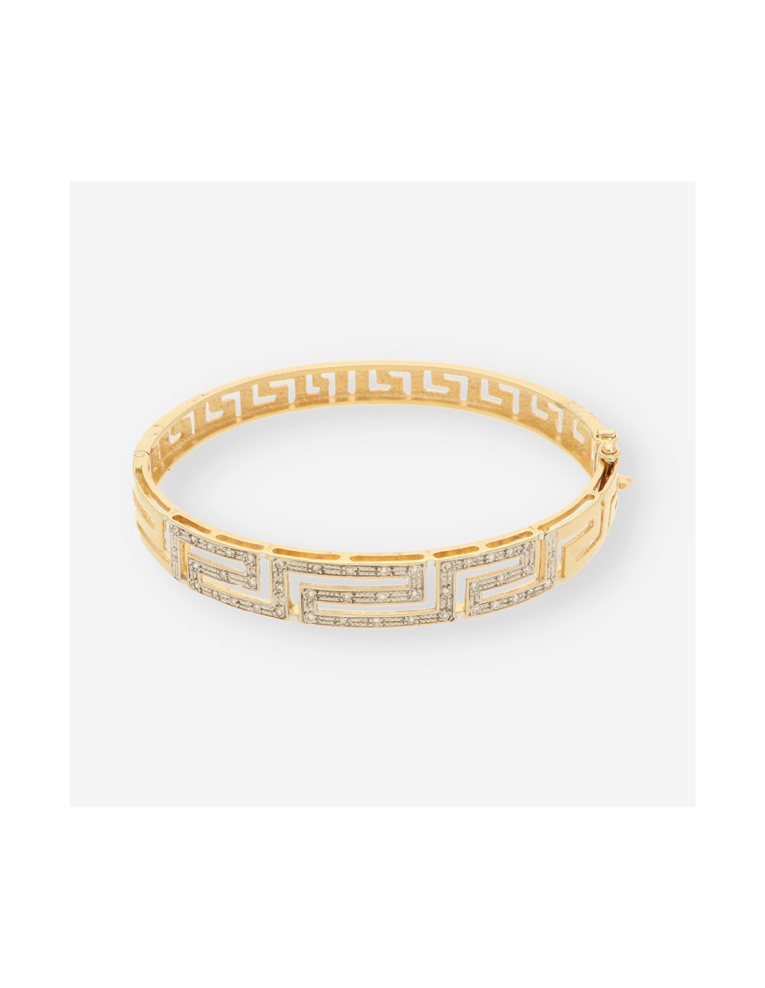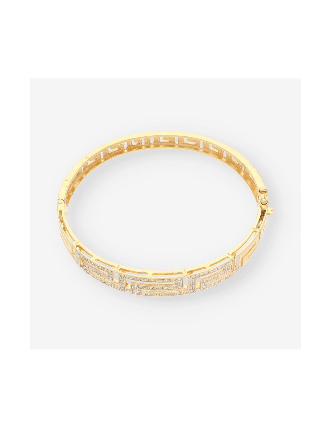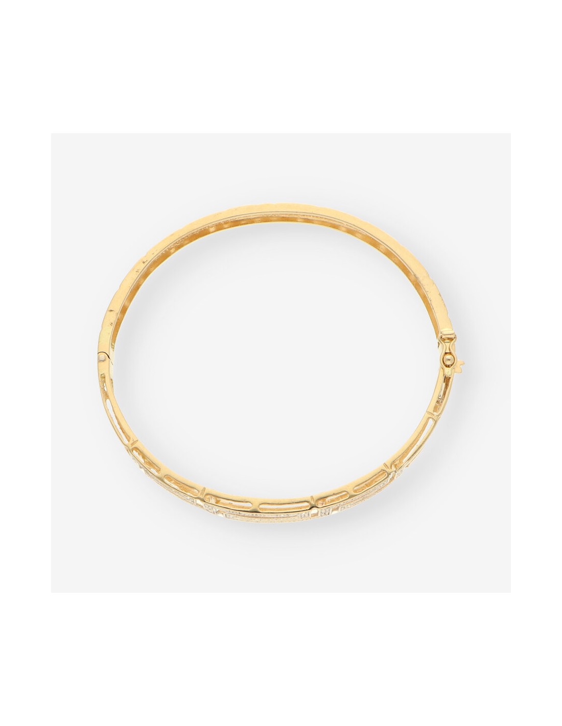 Preciosa pulsera esclava en oro amarillo de 18 quilates con brillantes, una elegante pieza de segunda mano. Con un diámetro de 6 cm y un peso total de 18,8 gramos, esta pulsera destaca por su diseño intrincado, con detalles realzados por los brillantes. Ideal para quienes buscan una joya clásica con un toque moderno.