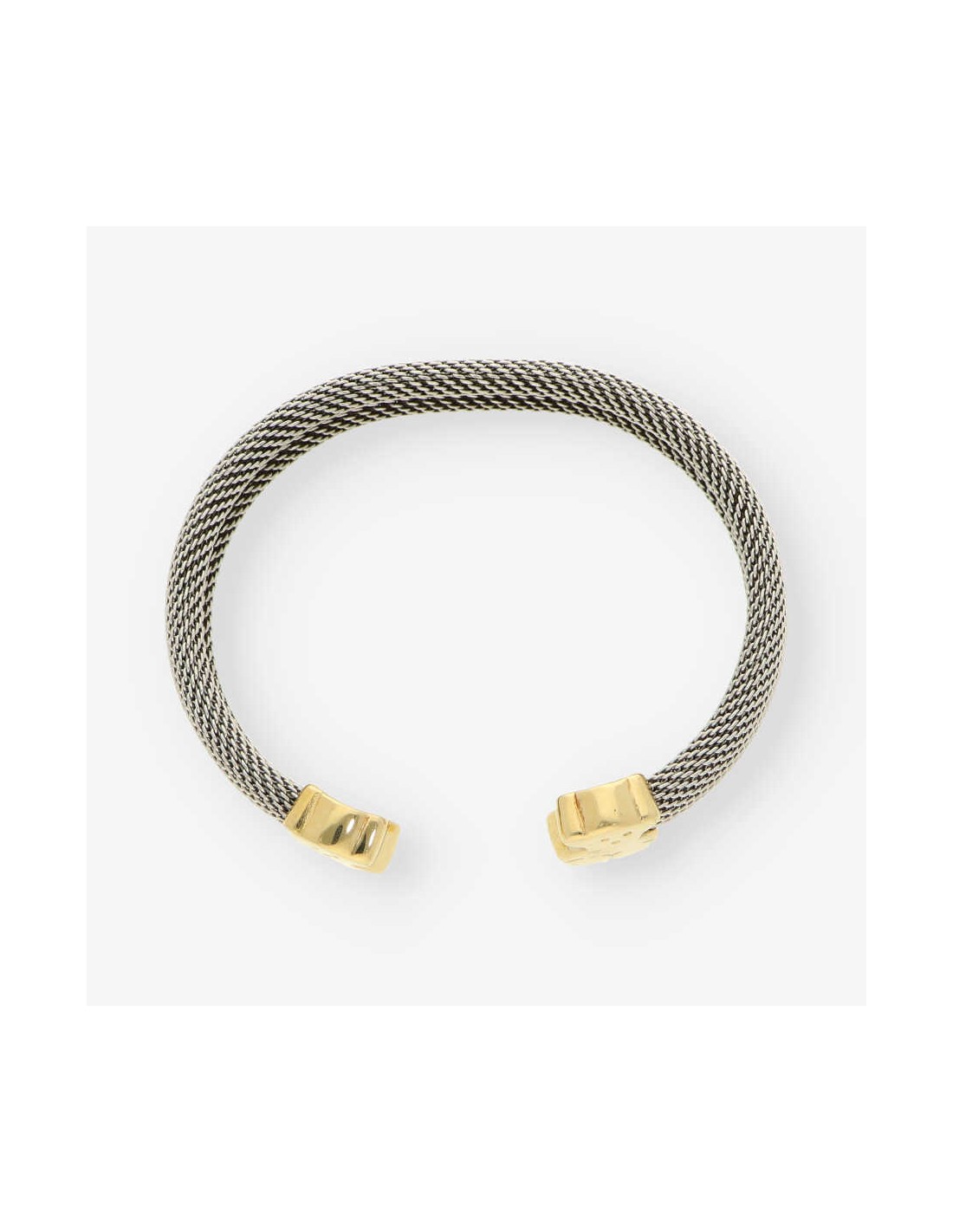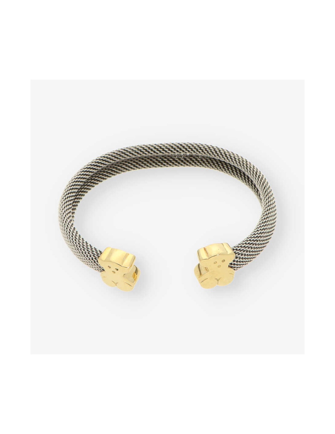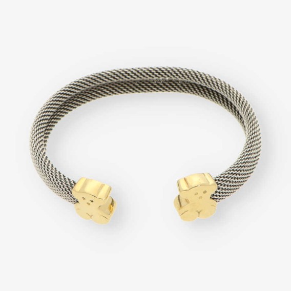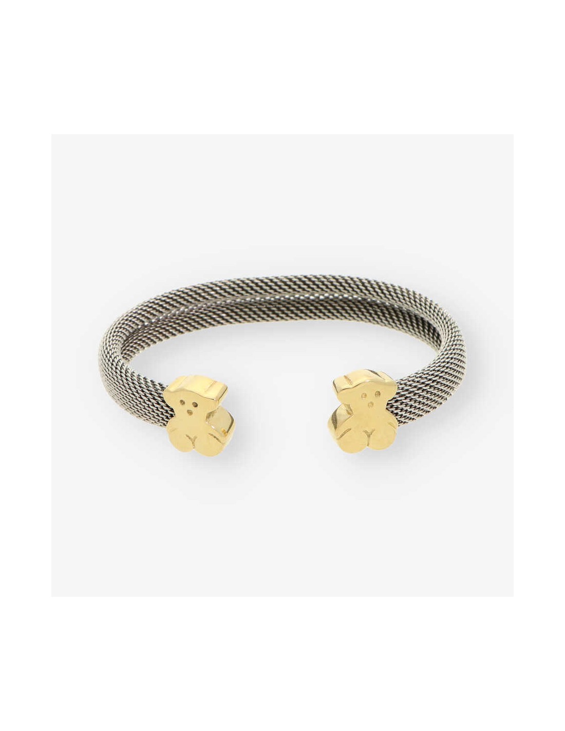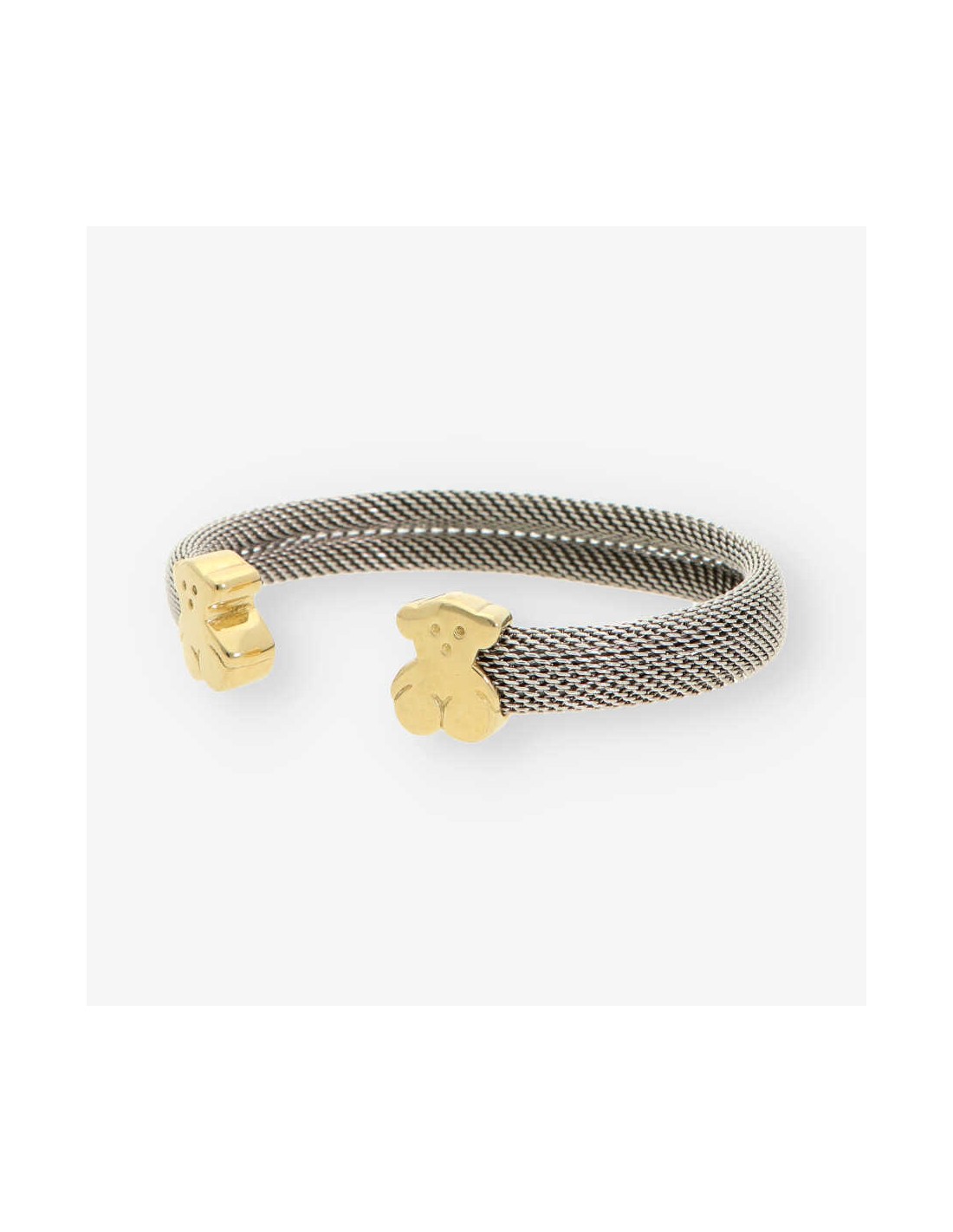 Preciosa pulsera Tous de segunda mano en malla de acero y los dos ositos en oro de 18kt. Éste es una regalo ideal para los amantes de la firma. Alto del oso: 1.2cm. Diámetro: 5.55cm.