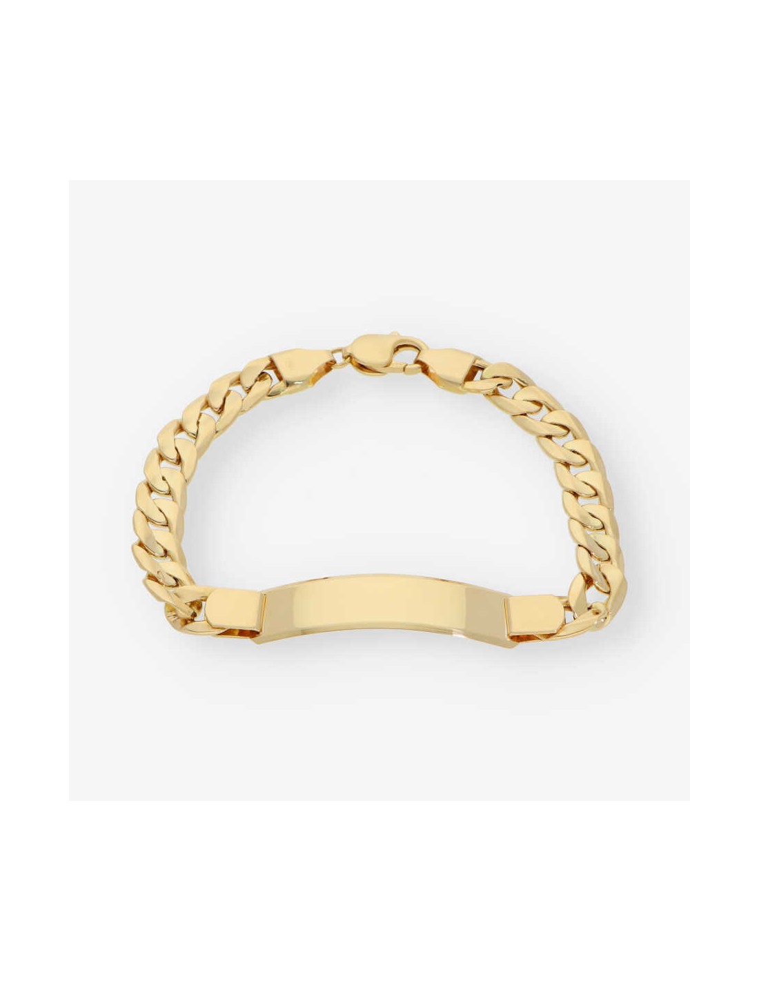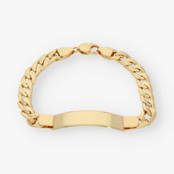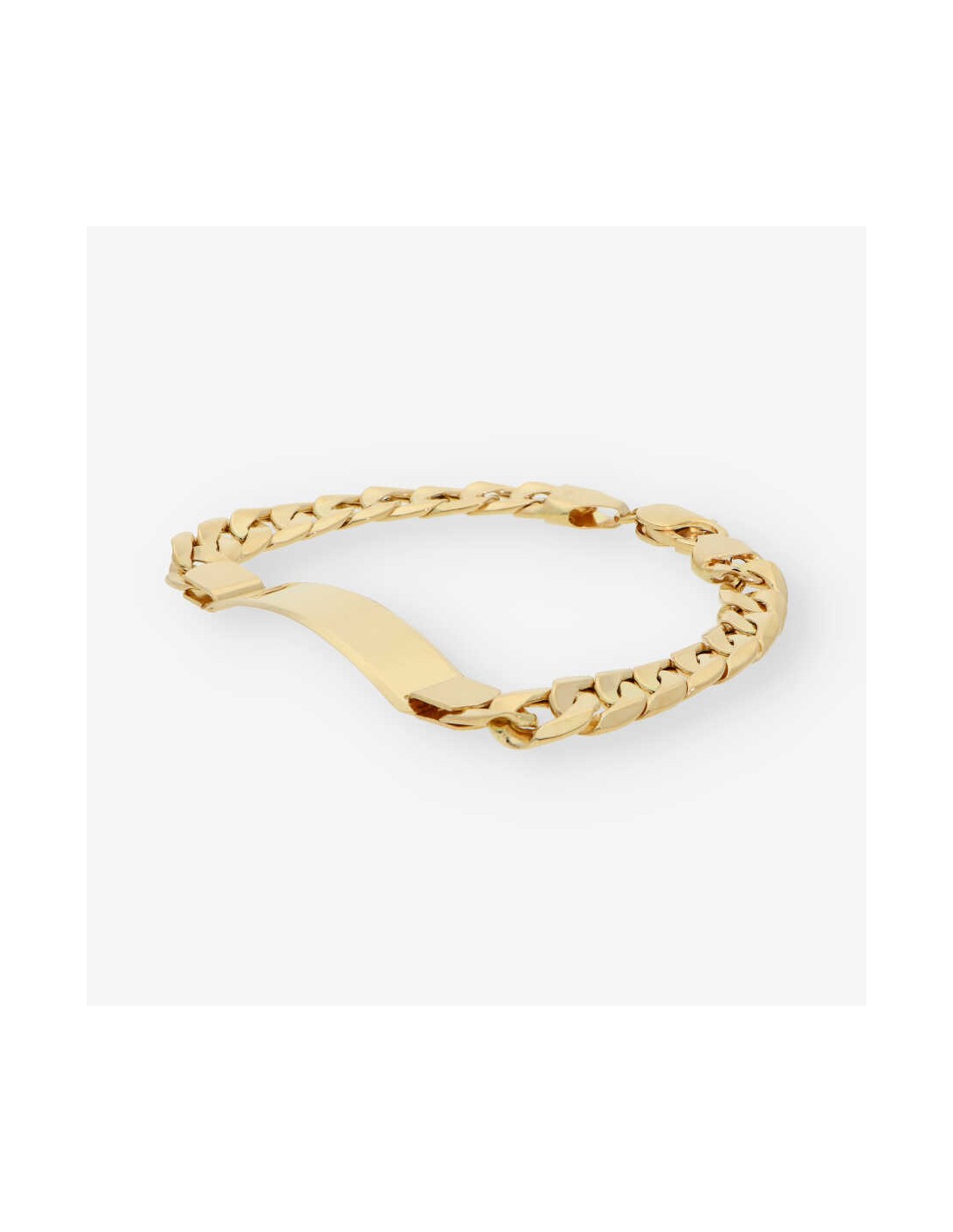 Preciosa pulsera nomeolvides nueva de TasadoresJoyeros en oro amarillo de primera ley con eslabones barbadas. Una pieza clásica y elegante, ideal para los amantes de pulseras. Longitud: 23.1cm. Grosor: 0.9cm. Ancho de la placa: 1.6cm. Peso: 22.4gr.