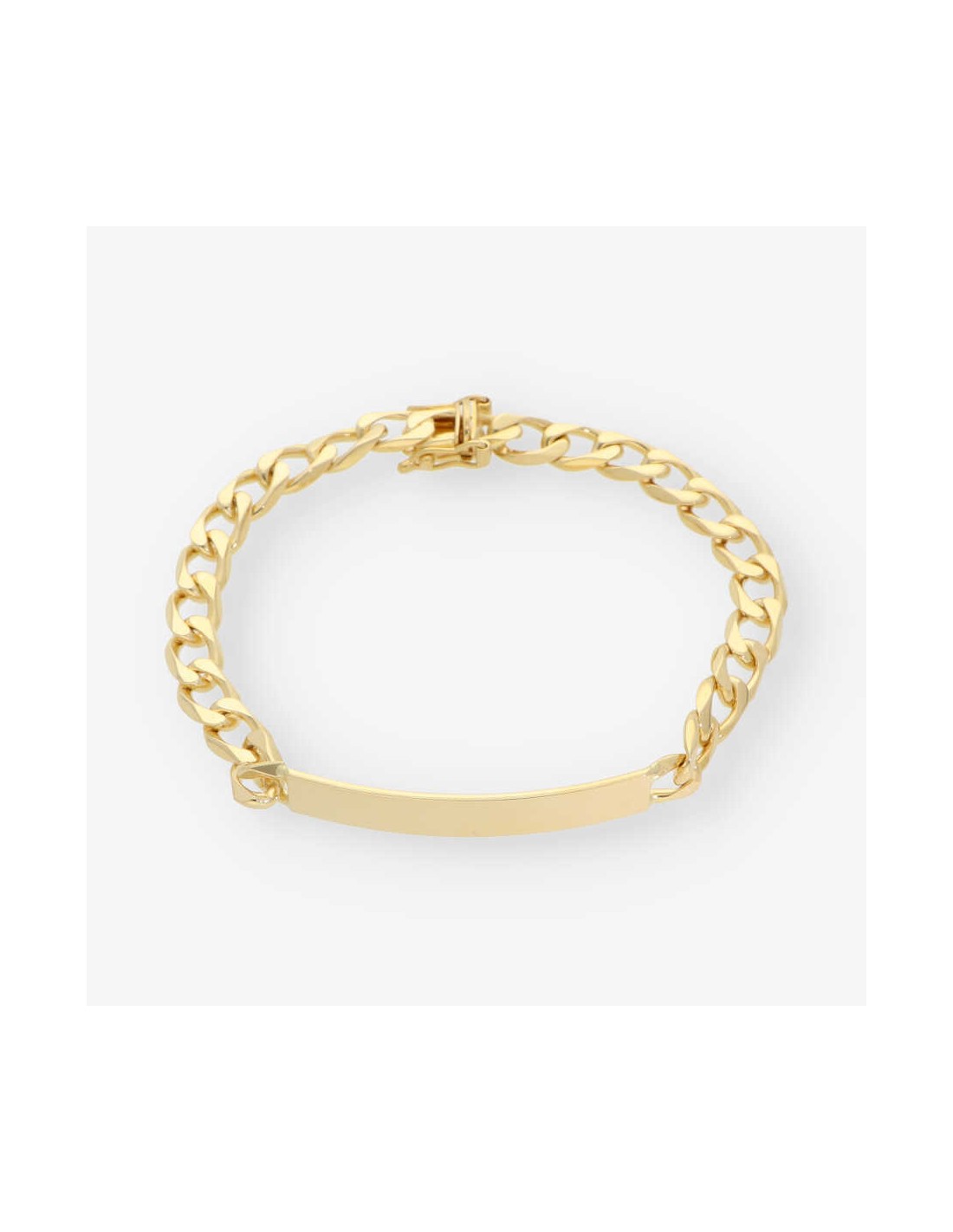 Preciosa pulsera nomeolvides nueva de TasadoresJoyeros en oro amarillo de primera ley con eslabones barbadas. Una pieza clásica y elegante, ideal para los amantes de pulseras. Longitud: 22cm. Grosor: 0.6cm. Ancho de la placa: 0.7cm. Peso: 25.6gr.