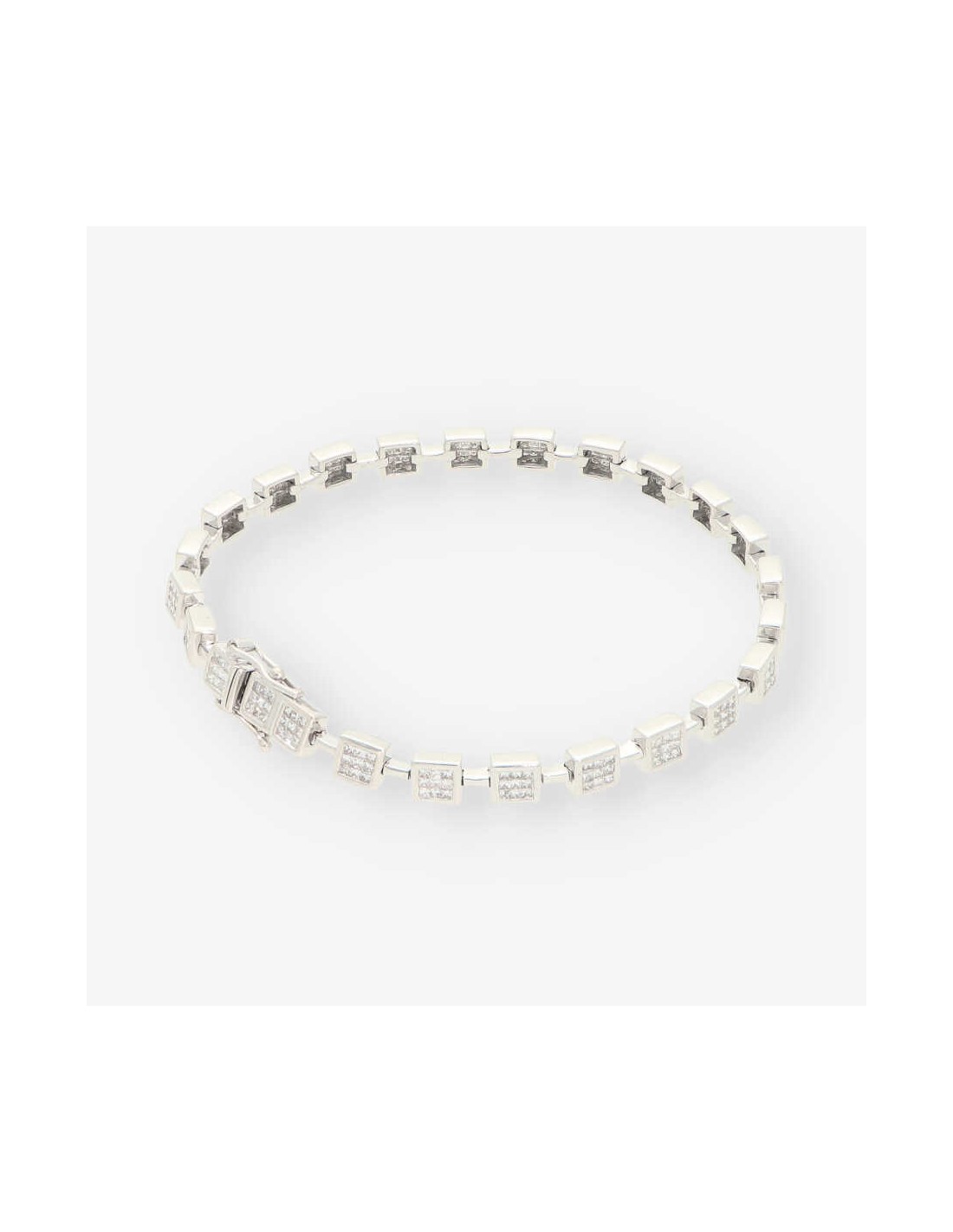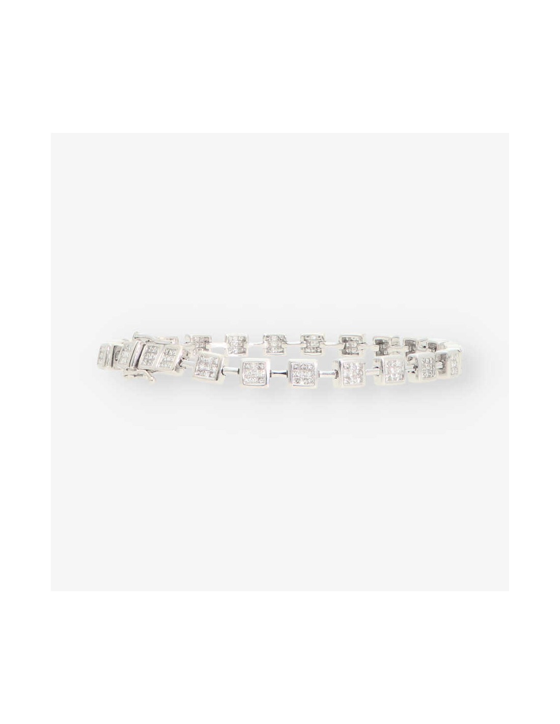 Espectacular pulsera de segunda mano en oro blanco de primera ley  brillantes engastados, un cierre de lengueta con dos ochos de seguridad. Una pieza que no pasa desapercibida para los amantes de la joyería y brillantería. Longitud: 19cm. Peso: 15.8gr.