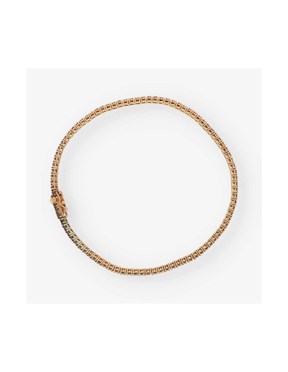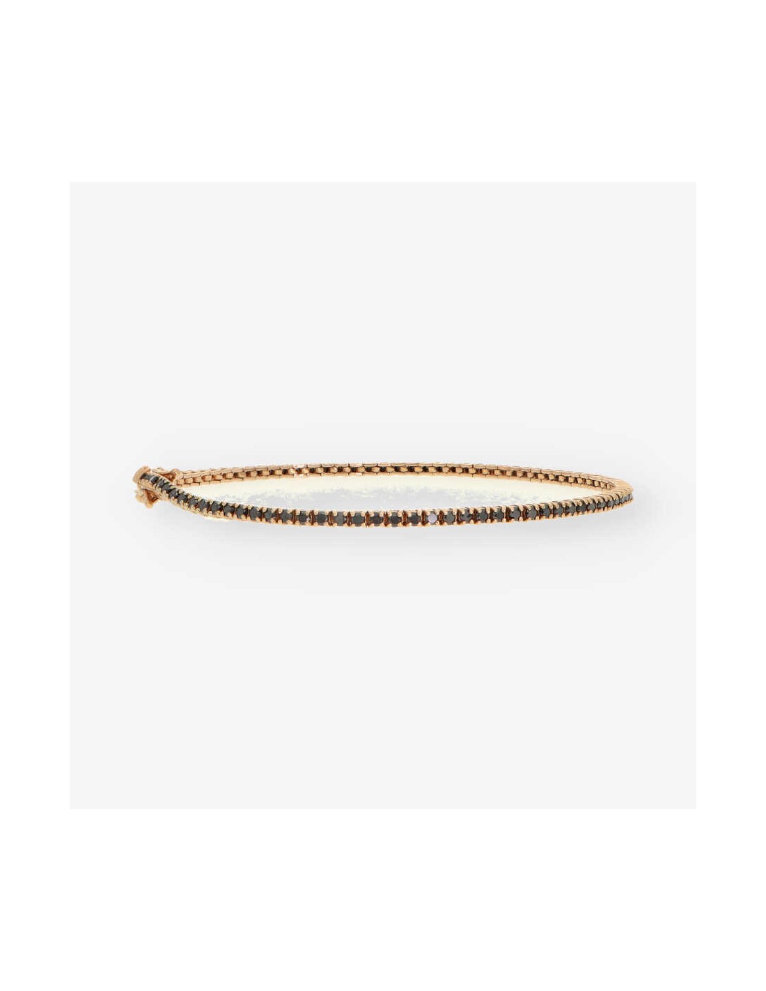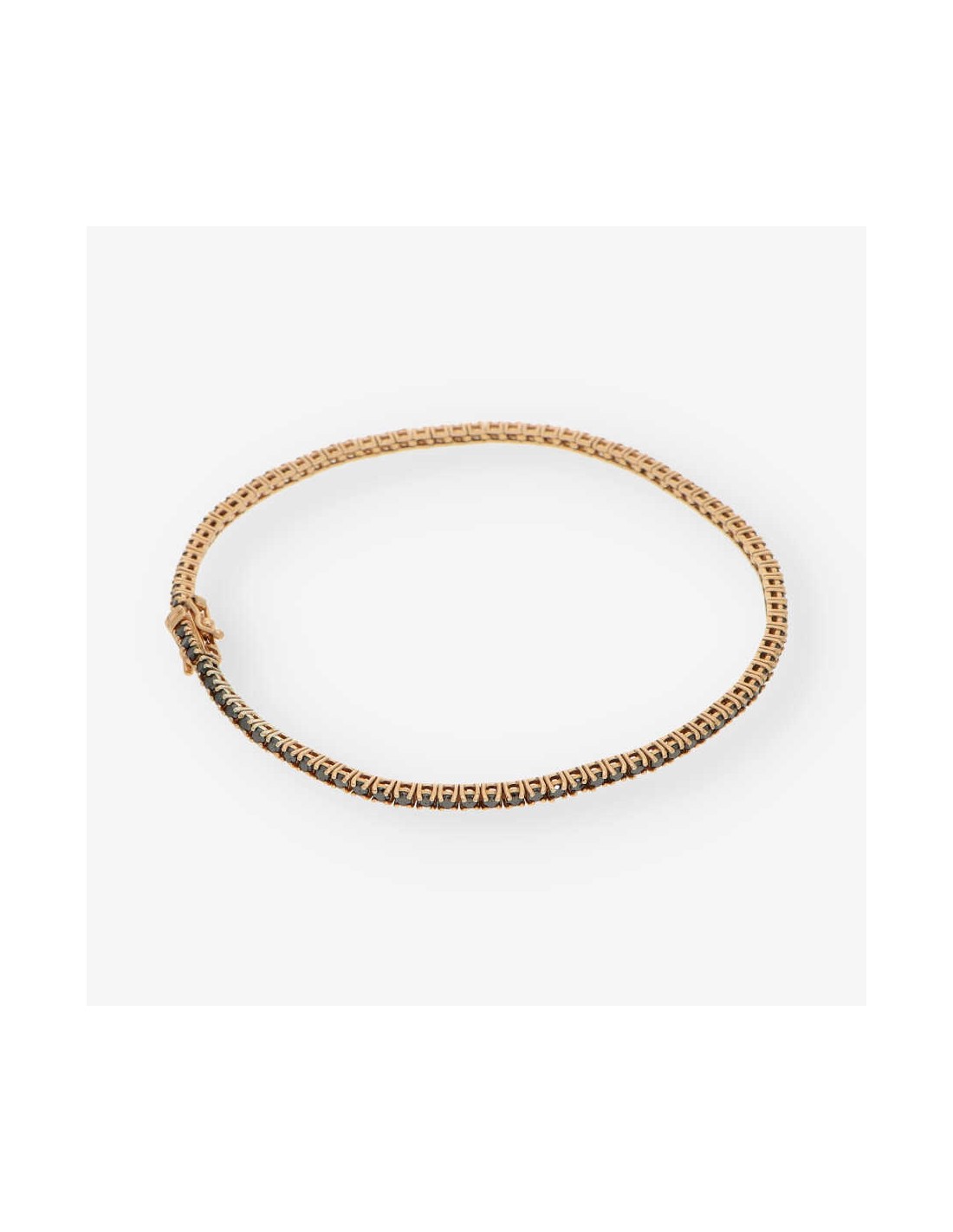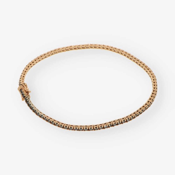Preciosar pulsera riviere de segunda mano en oro rosa de primera ley y brillantes negro, con un cierre de lengueta y dos ochos de seguridad. Una pieza que no pasa desapercibida para los amantes de la joyería y brillantería. Longitud: cm. Peso: gr.
