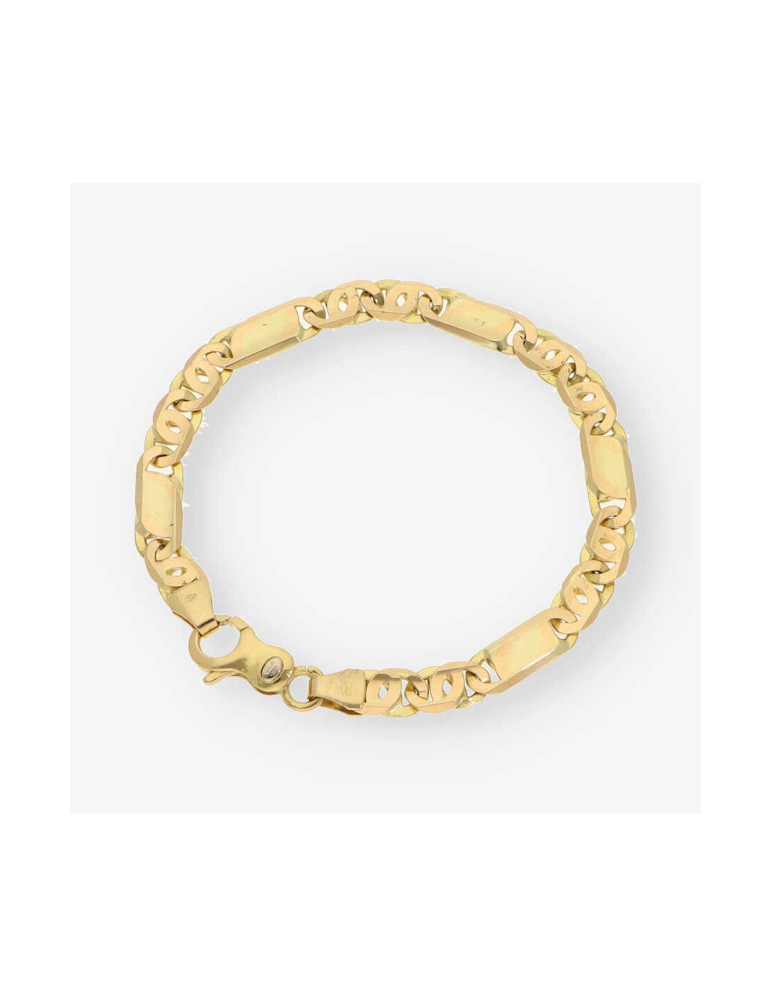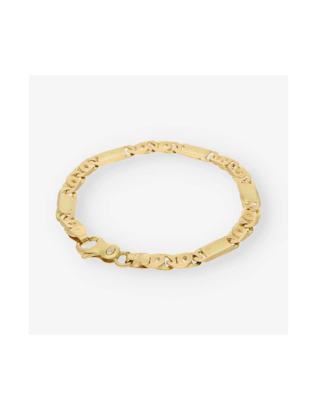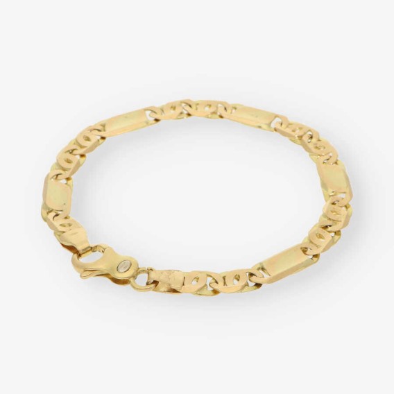 Preciosa pulsera de segunda mano en oro amarillo de primera ley. Una pieza clásica y elegante, ideal para los amantes de pulseras. Longitud: 22.5cm. Grosor: 0.7cm. Peso: 27.6gr.