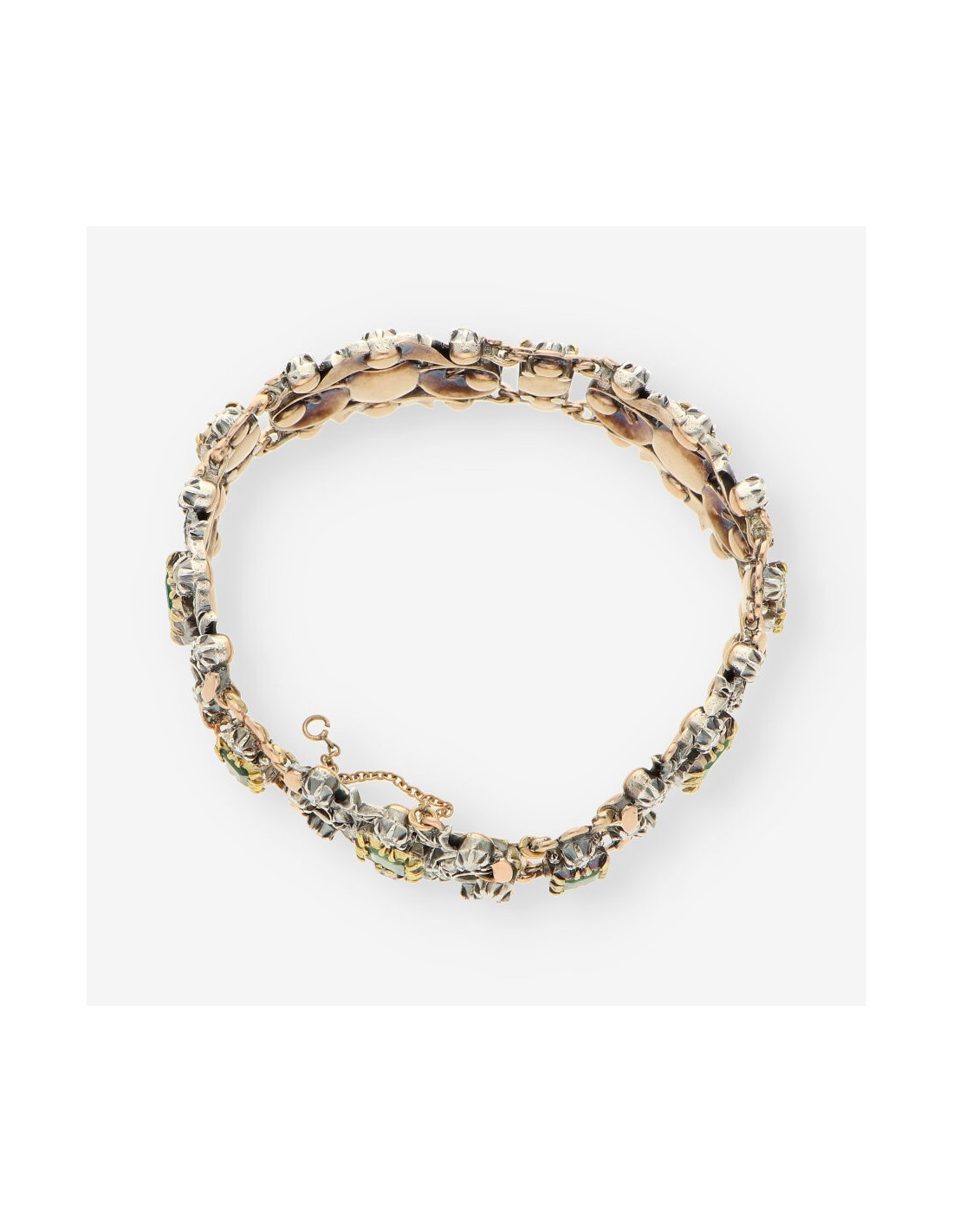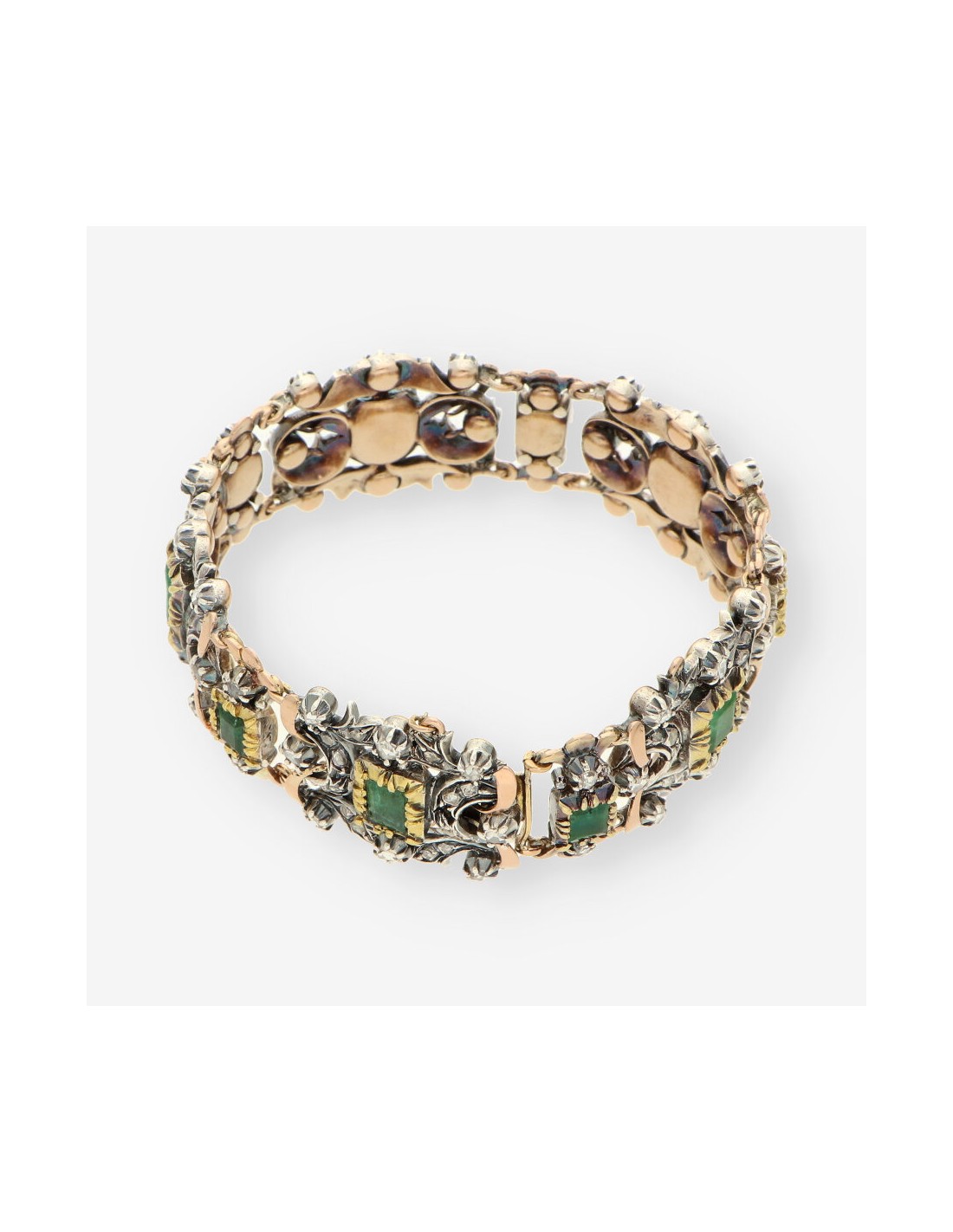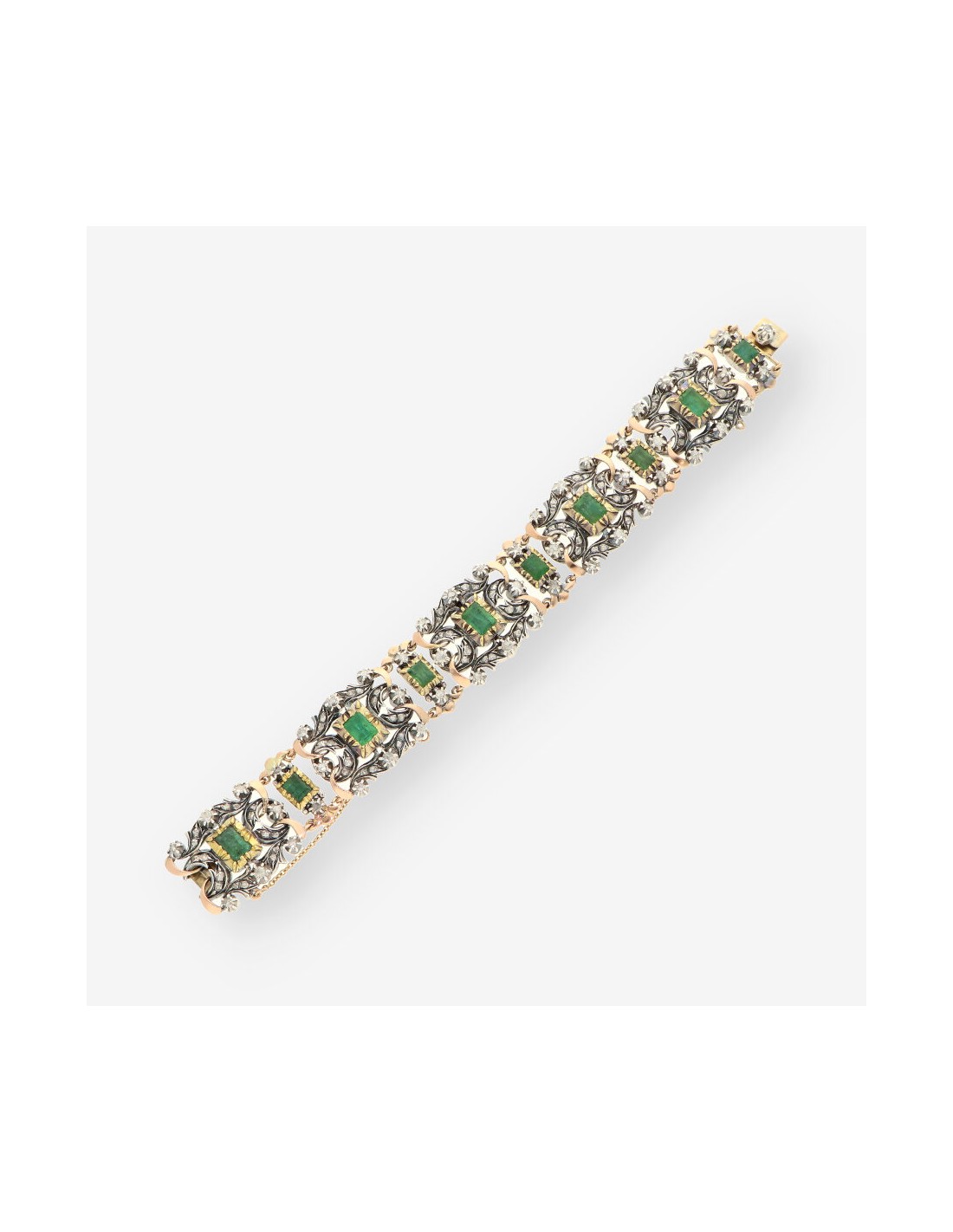 Pulsera plata y oro vintage con esmeralda y diamantes