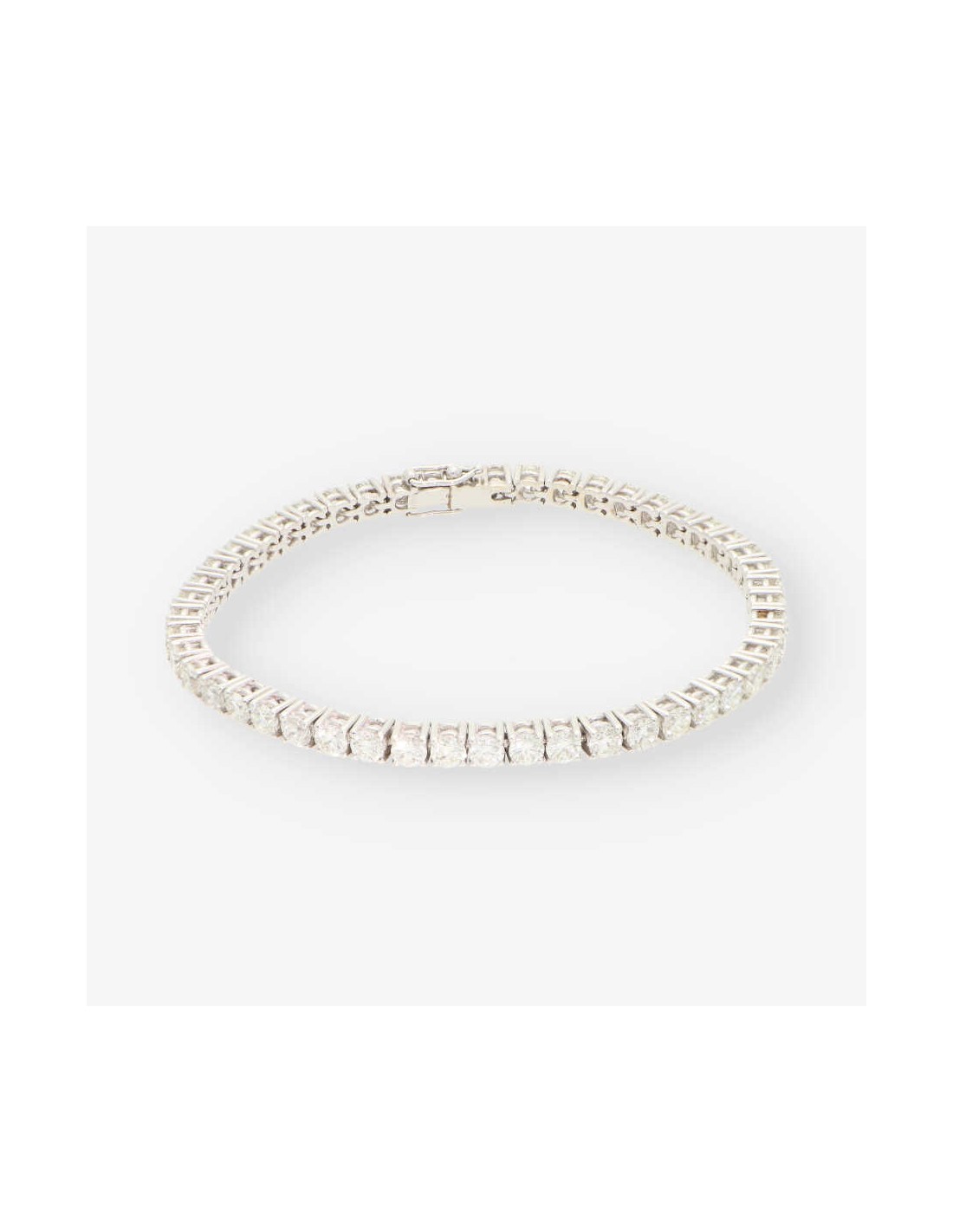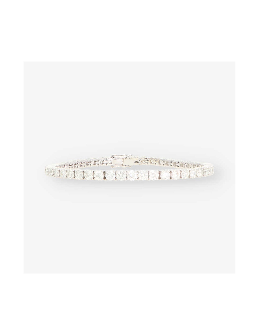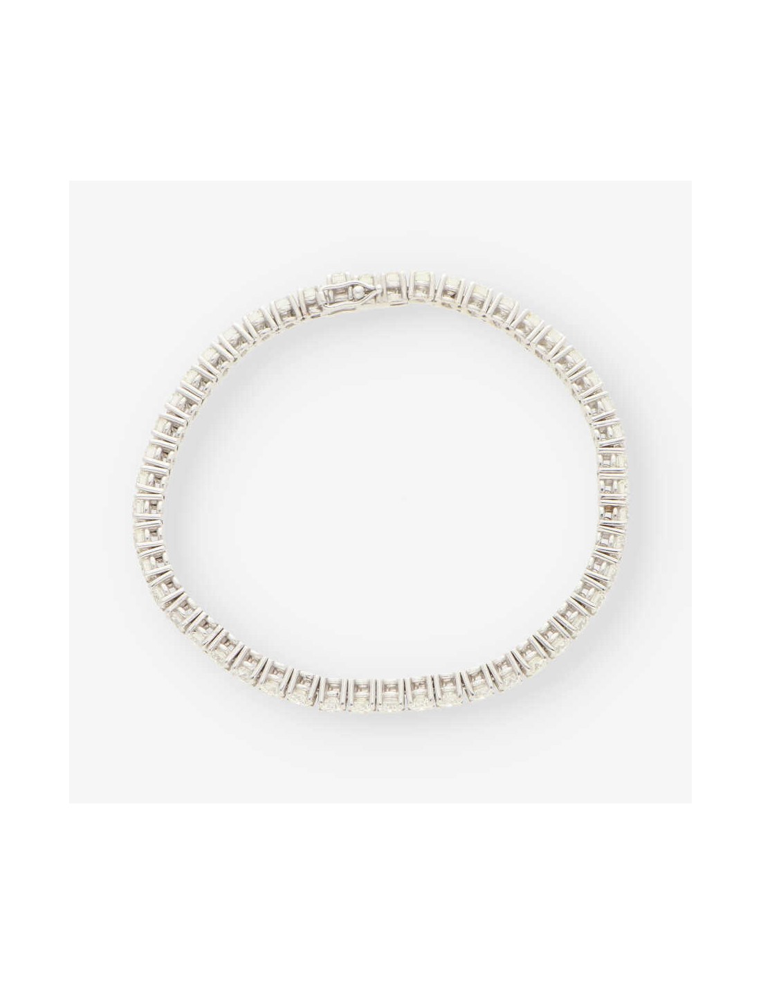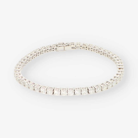 Espectacular pulsera riviere de segunda mano en oro blanco de primera ley, con un cierre de lengueta y dos ochos de seguridad. Una pieza que no pasa desapercibida para los amantes de la joyería y brillantería. Longitud: 18.5cm. Peso: 16.72gr. Quilates en diamante: 7(aprox).