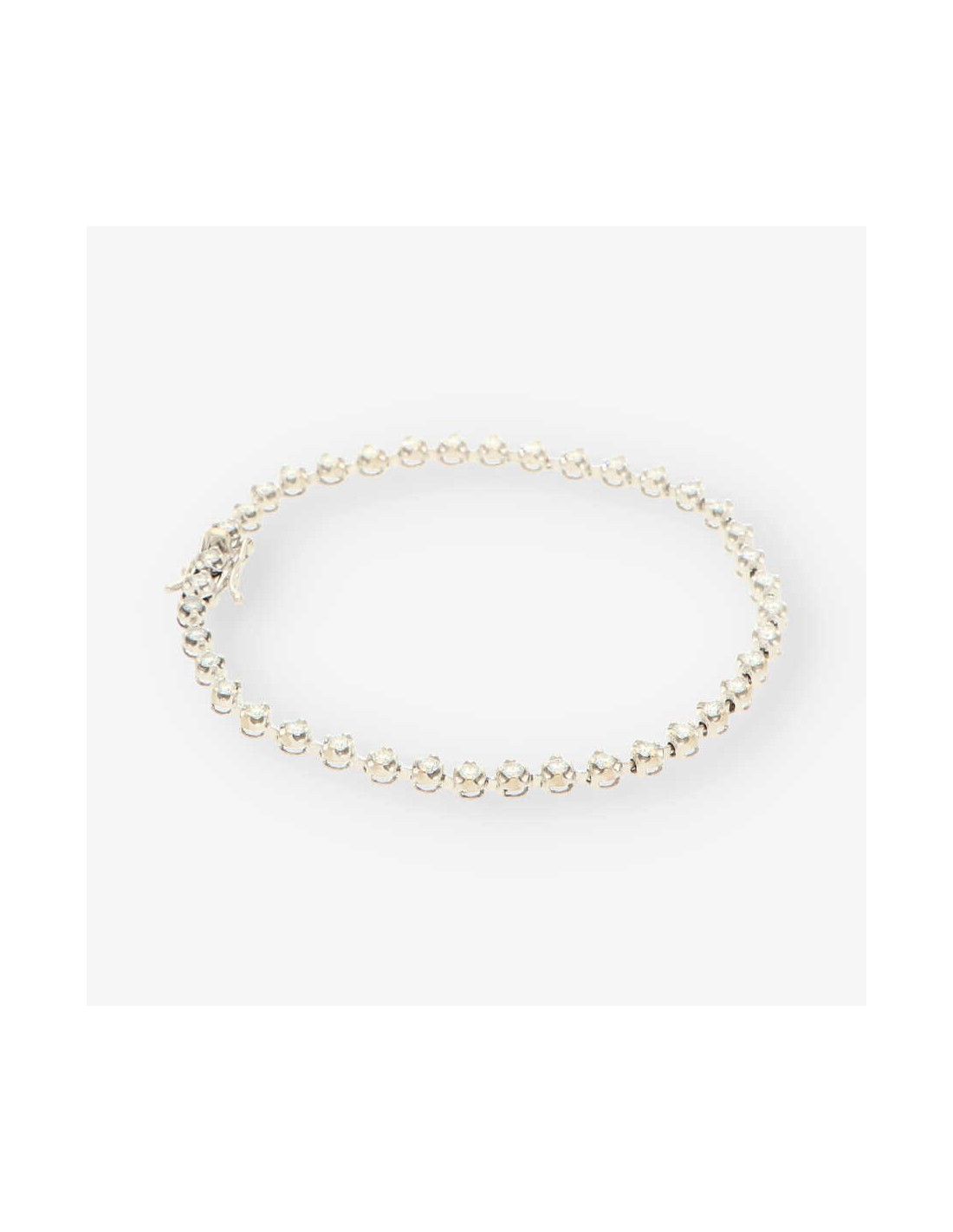 Preciosar pulsera riviere de segunda mano en oro blanco de primera ley, con un cierre de lengueta y dos ochos de seguridad. Una pieza que no pasa desapercibida para los amantes de la joyería y brillantería. Longitud: 17cm. Peso: 5.4gr.