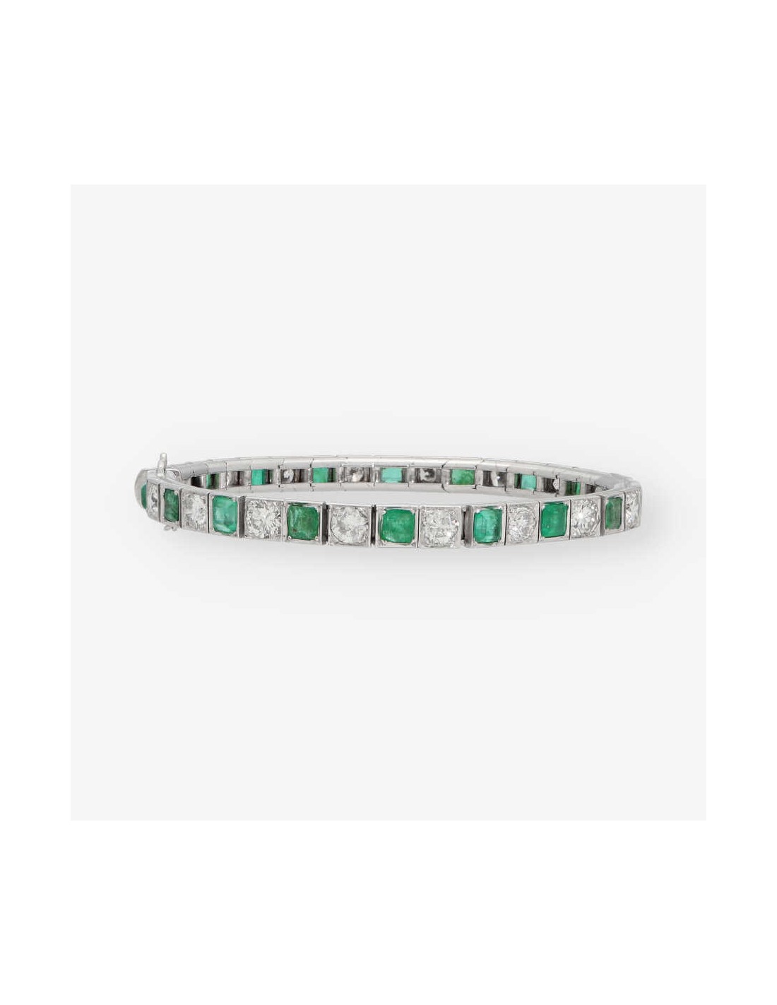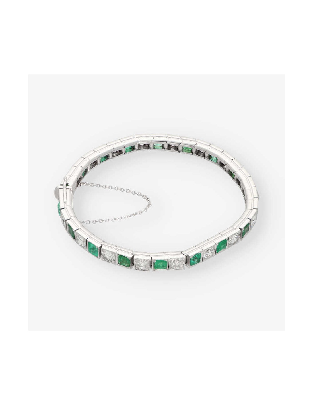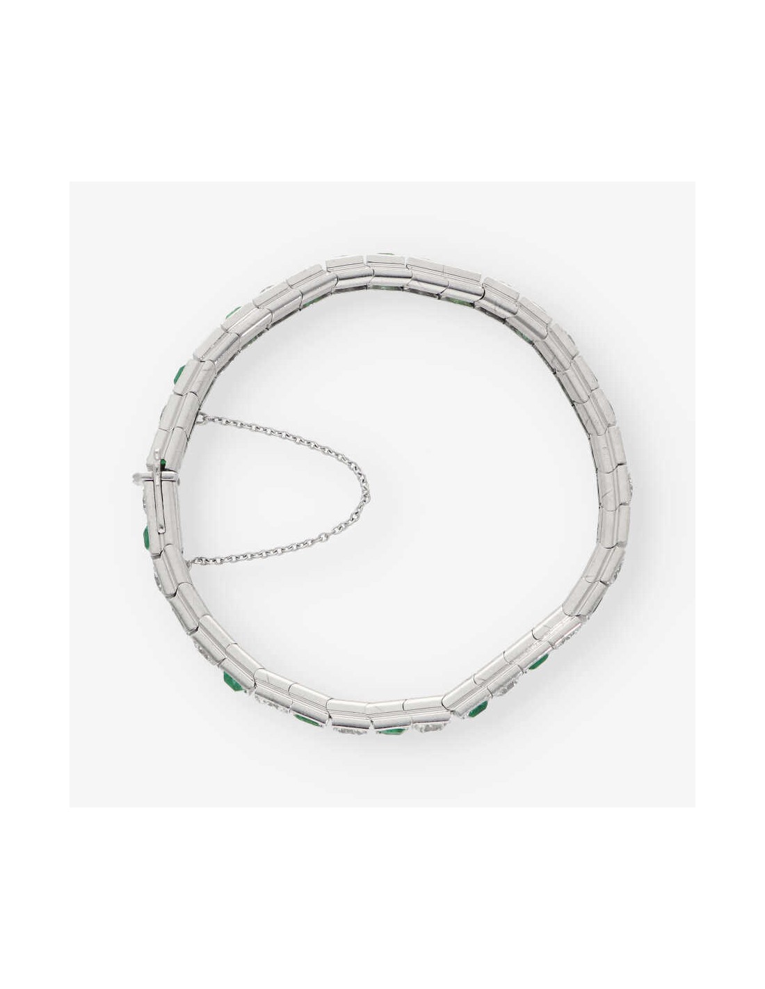 Pulsera semirrígida en oro blanco 18kt con brillantes y esmeraldas