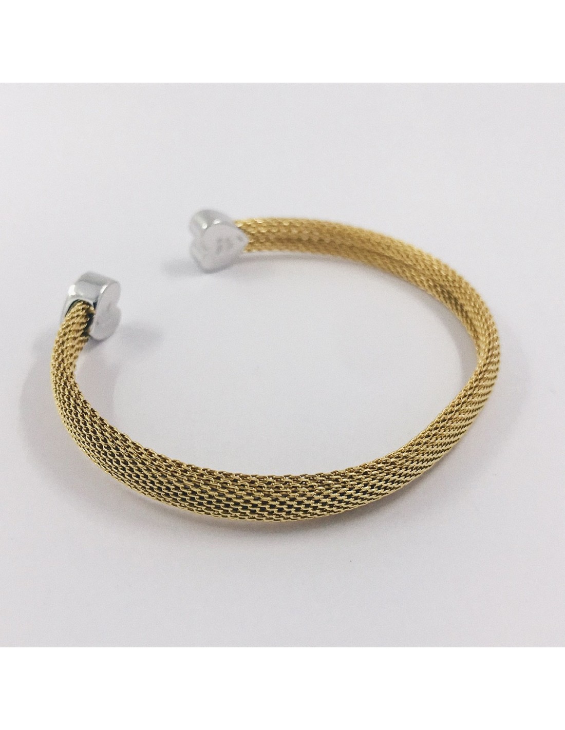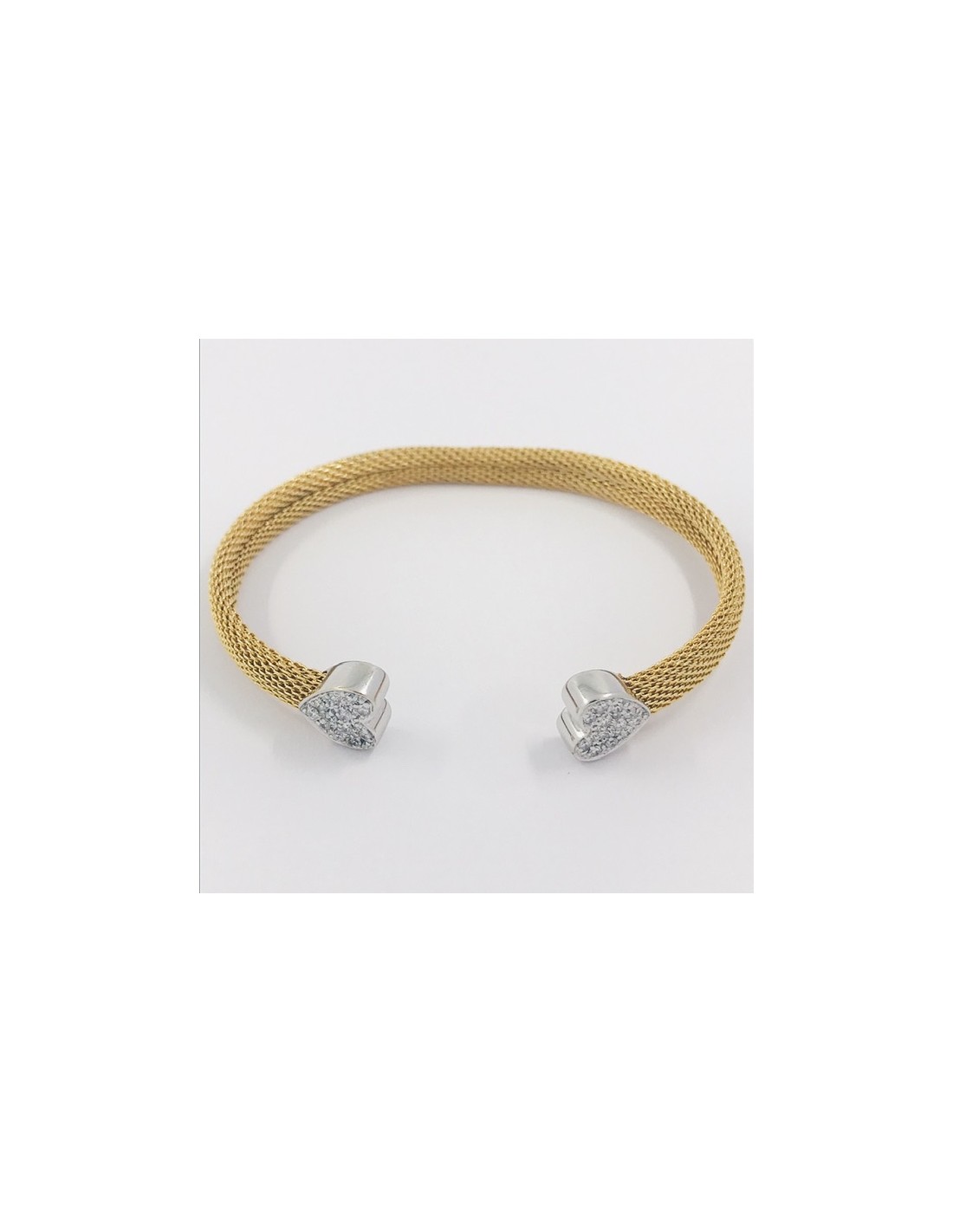 Magnifica pulsera Tous en oro de segunda mano en oro amarillo y blanco de primera ley con un precioso acabado en corazón con brillantes en los dos extremos de la pieza. Ancho: 6cm. Peso: 13,44gr.