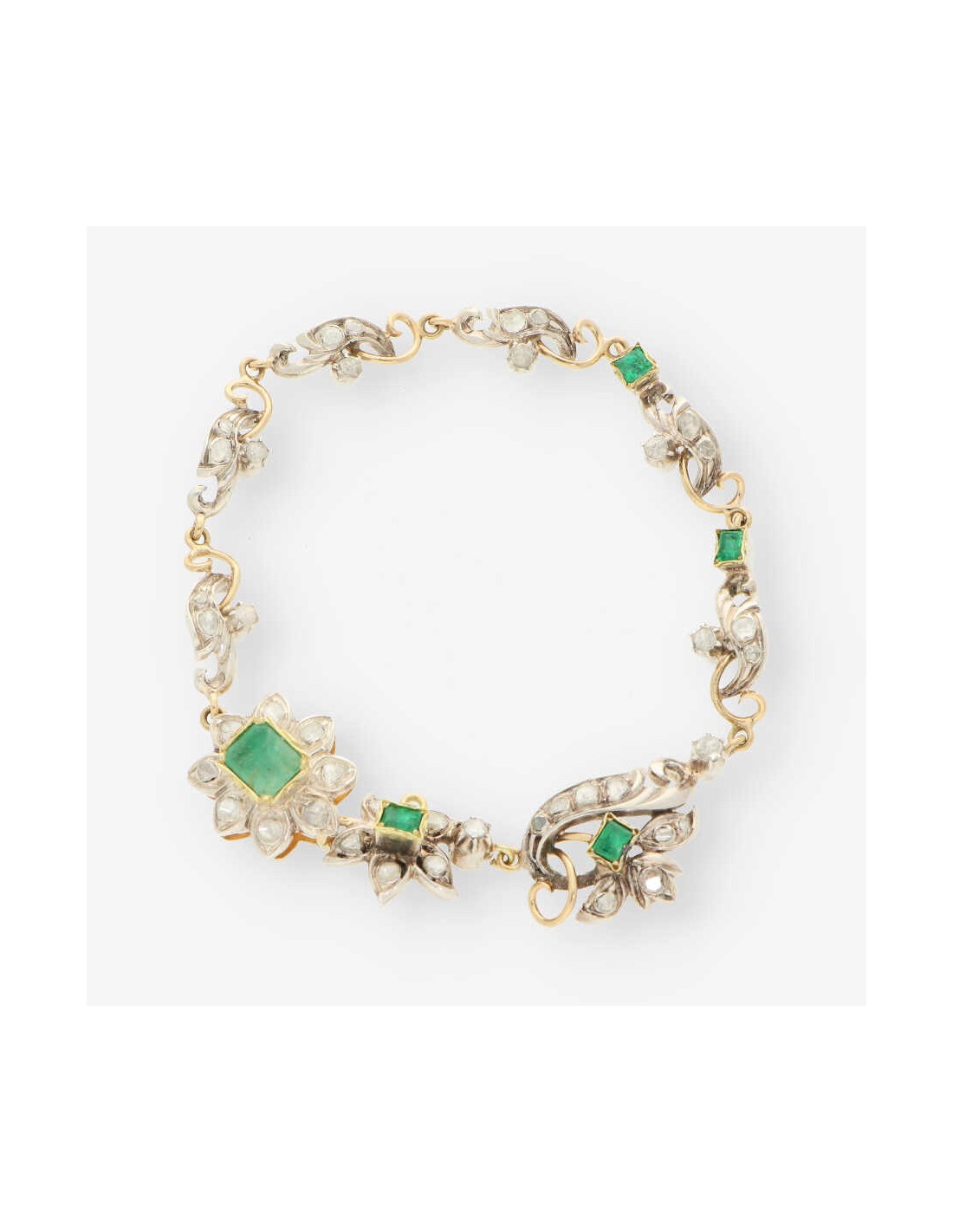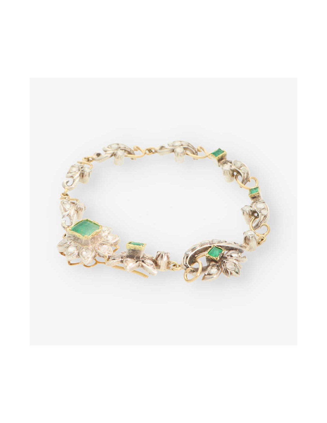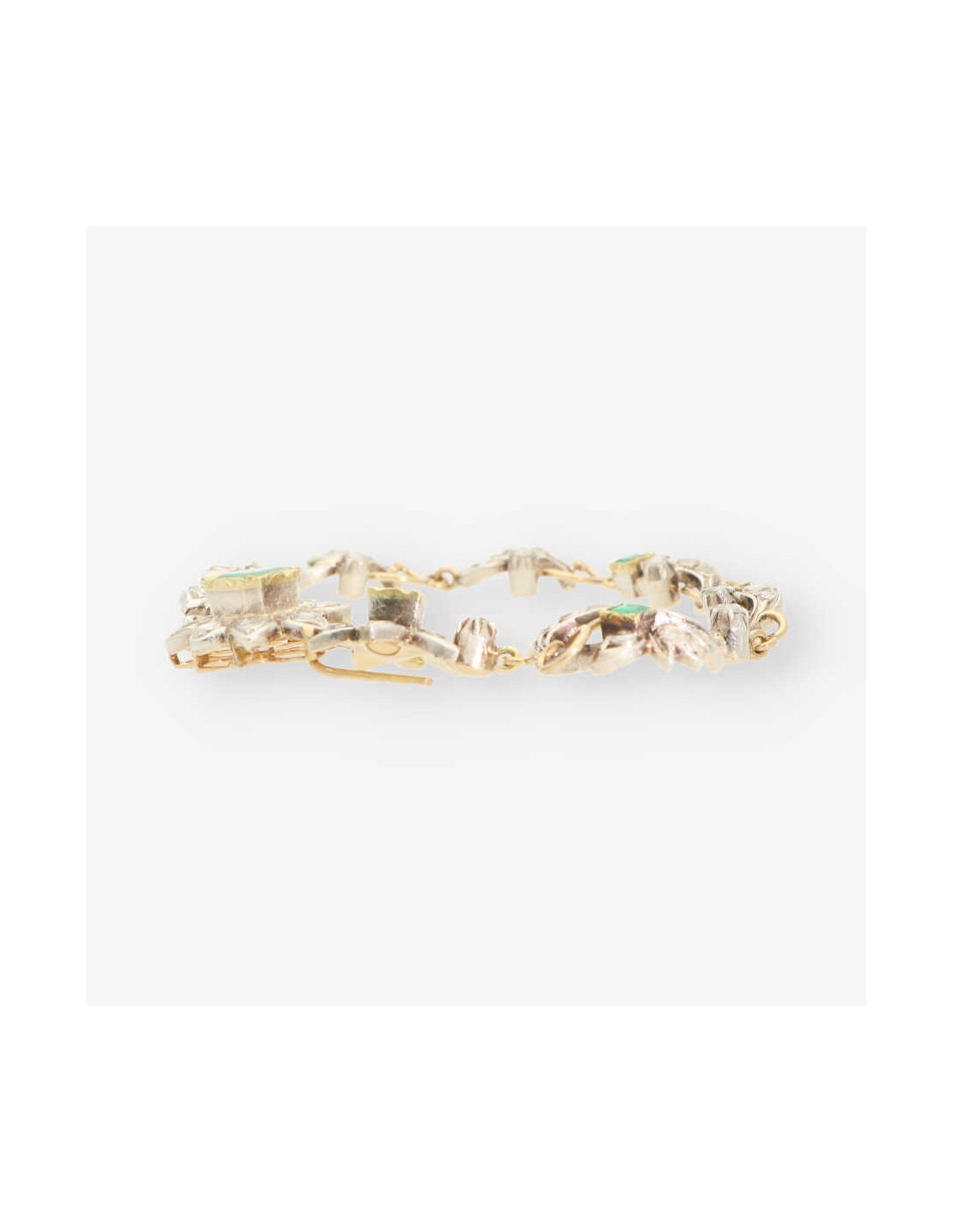 Pulsera vintage en oro 18kt y plata con esmeraldas y diamantes