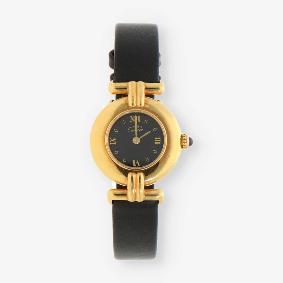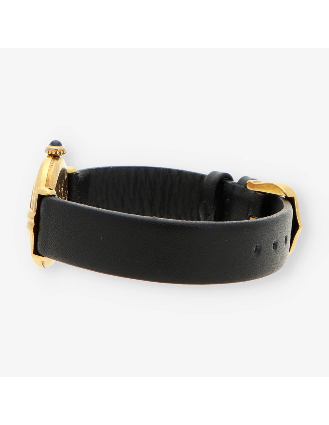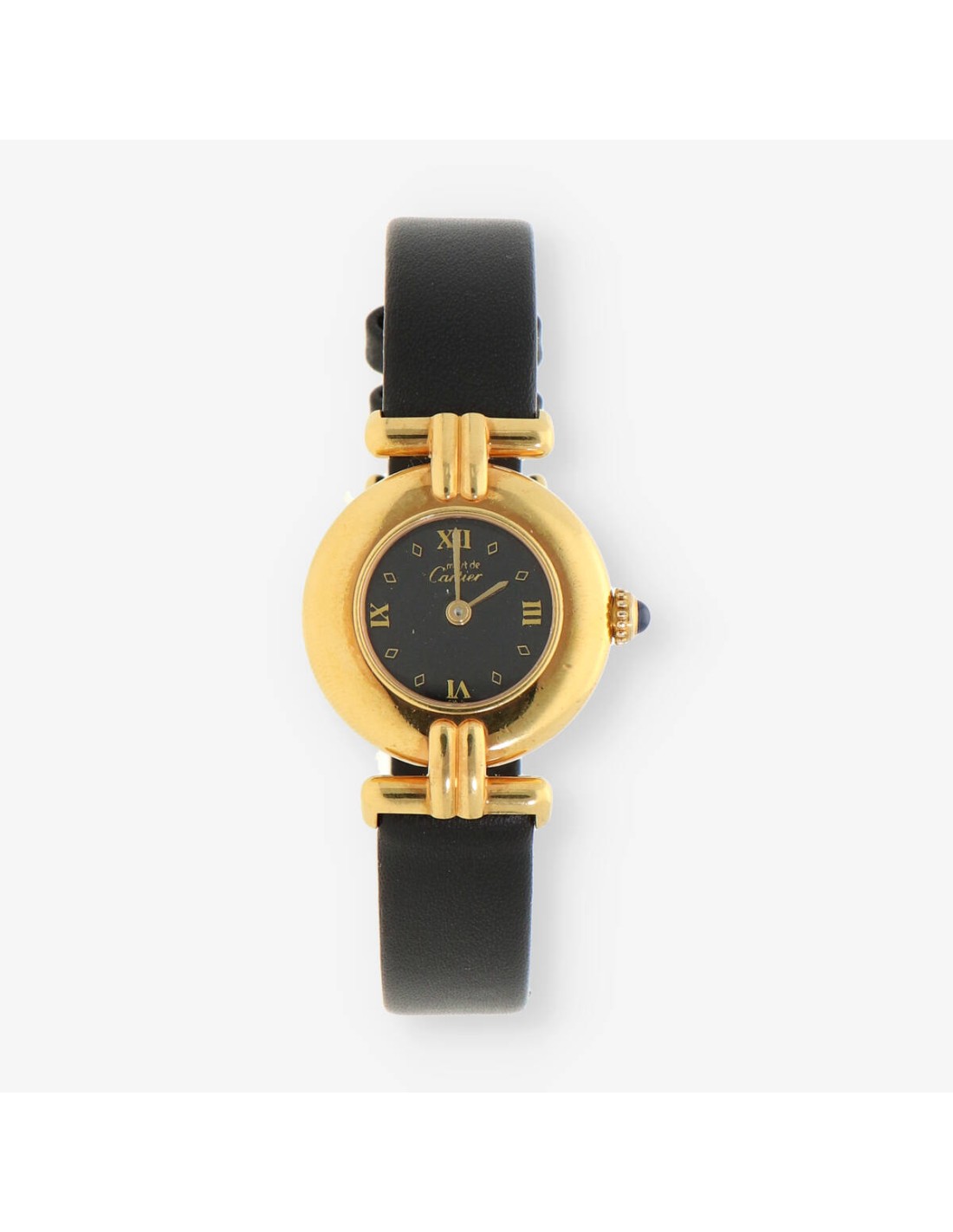 Magnifico Reloj Argent de Cartier de segunda mano en perfecto estado de marcha y conservación con movimiento de cuarzo. Caja de 26mm. Con cristal zafiro, fondo negro y números romanos. Correa de piel negro y cierre de hebilla.