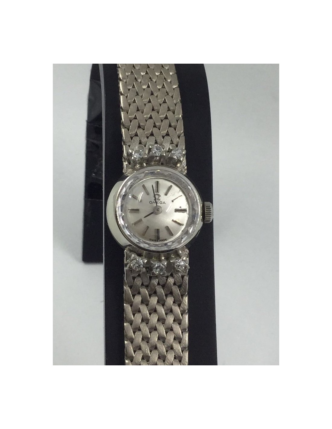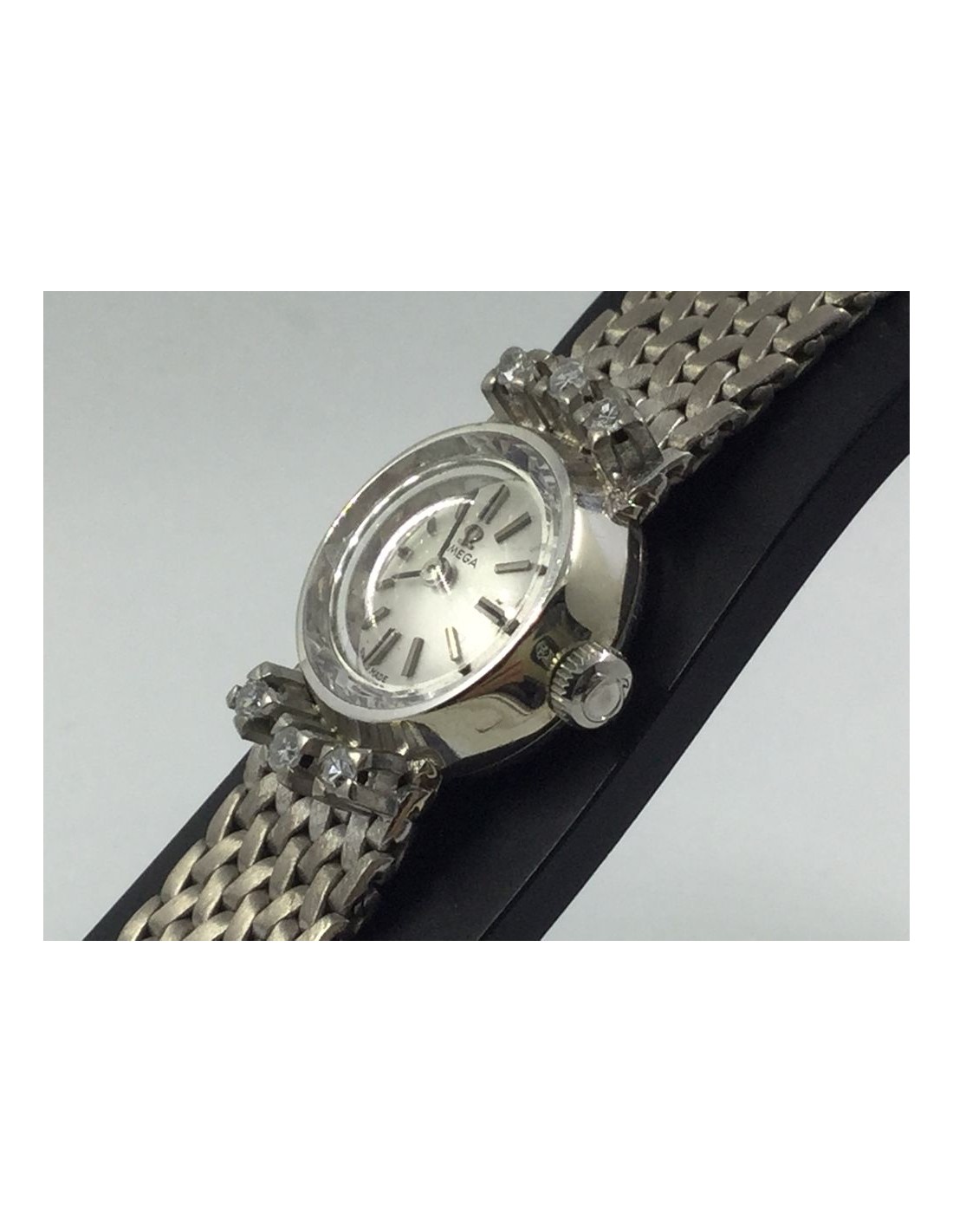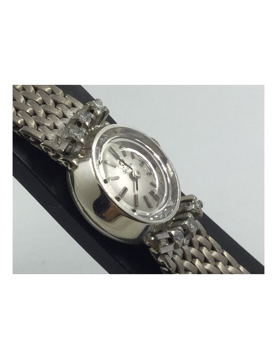 Reloj Omega de segunda mano para dama en oro blanco de 18 kt y brillantes. Longitud: 15 cm. Peso: 37,3 gr.