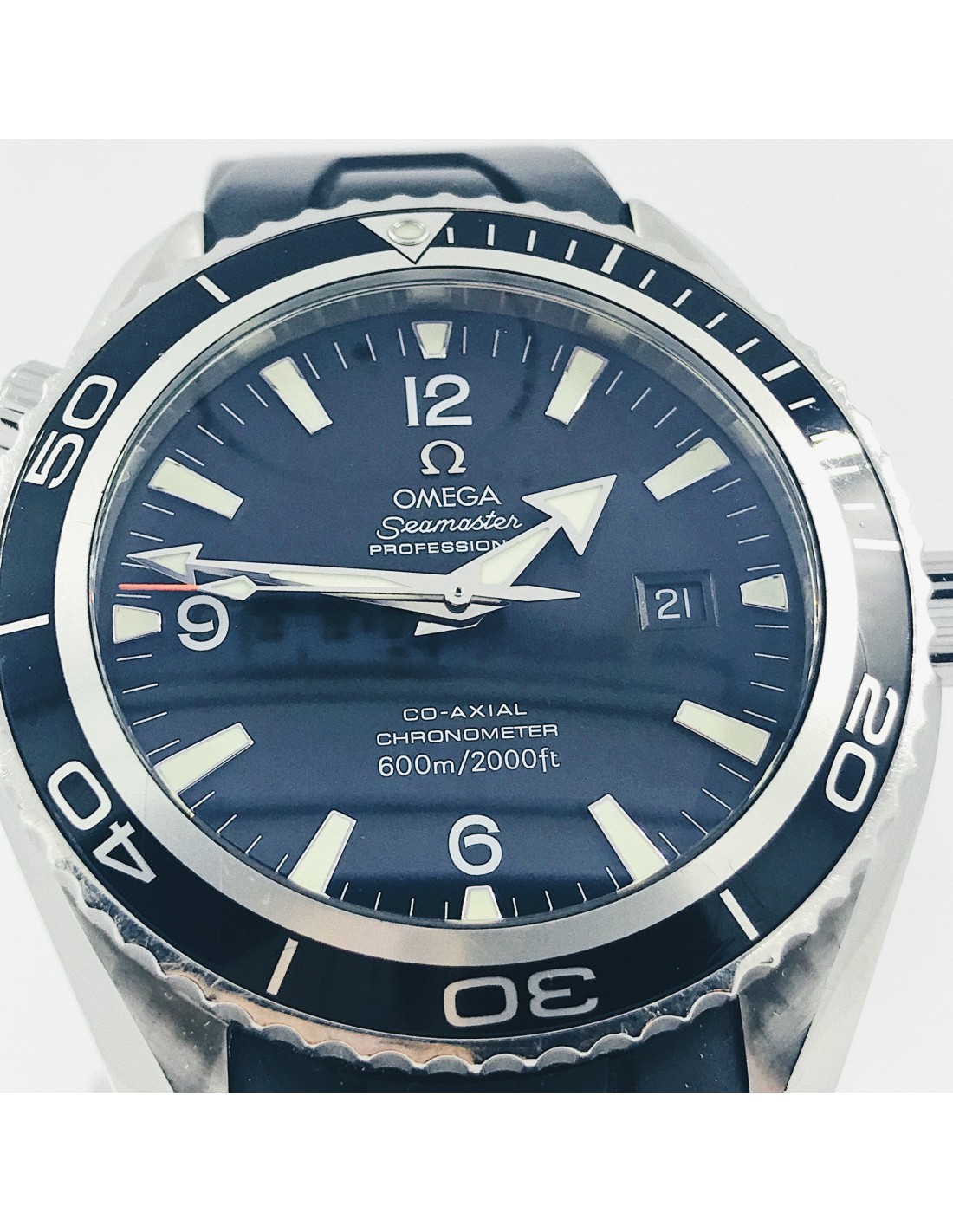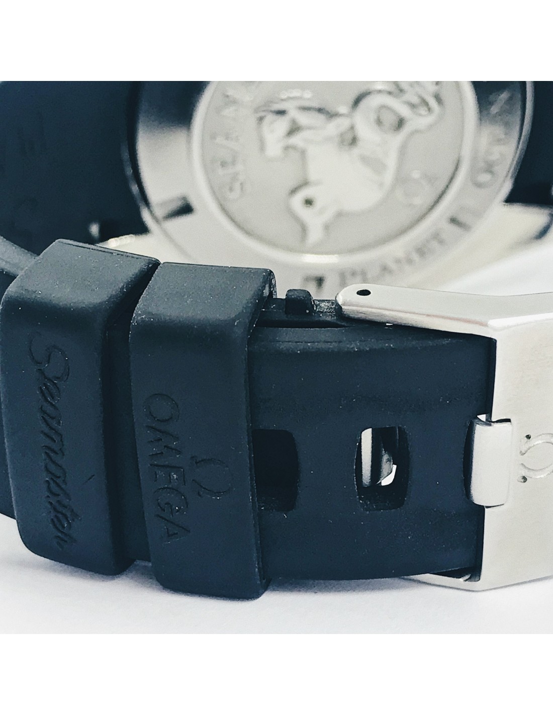 Reloj Omega Planet Ocean de segunda mano en perfecto estado de marcha y conservación. Ref: 29005091. Caja en acero 45,5mm con cristal de zafiro esfera negra con números árabes y cuerda automática. Correa de caucho en negro con cierre en acero. Resistente al agua 60 ATM. Con caja original y documento.